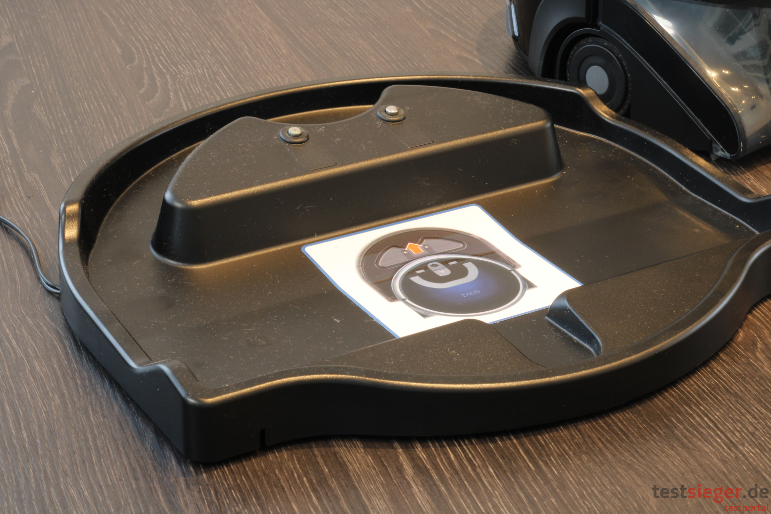 Im Pfad-Modus fährt er nach getaner Arbeit wieder zu seinem Ausgangspunkt zurück. Das ist allerdings nicht die Ladestation. Ist die Batterie leer, müssen Nutzerinnen und Nutzer den Roboter auf die flache Station setzen und zum Reinigen auch wieder herunternehmen. Das ist natürlich nicht sonderlich komfortabel, hat aber wie bereits erwähnt den Vorteil, dass sich die Station frei platzieren lässt und nicht frei im Raum stehen muss. Wer möchte, kann den Zaco also auch in der Abstellkammer oder auf dem Sideboard laden.