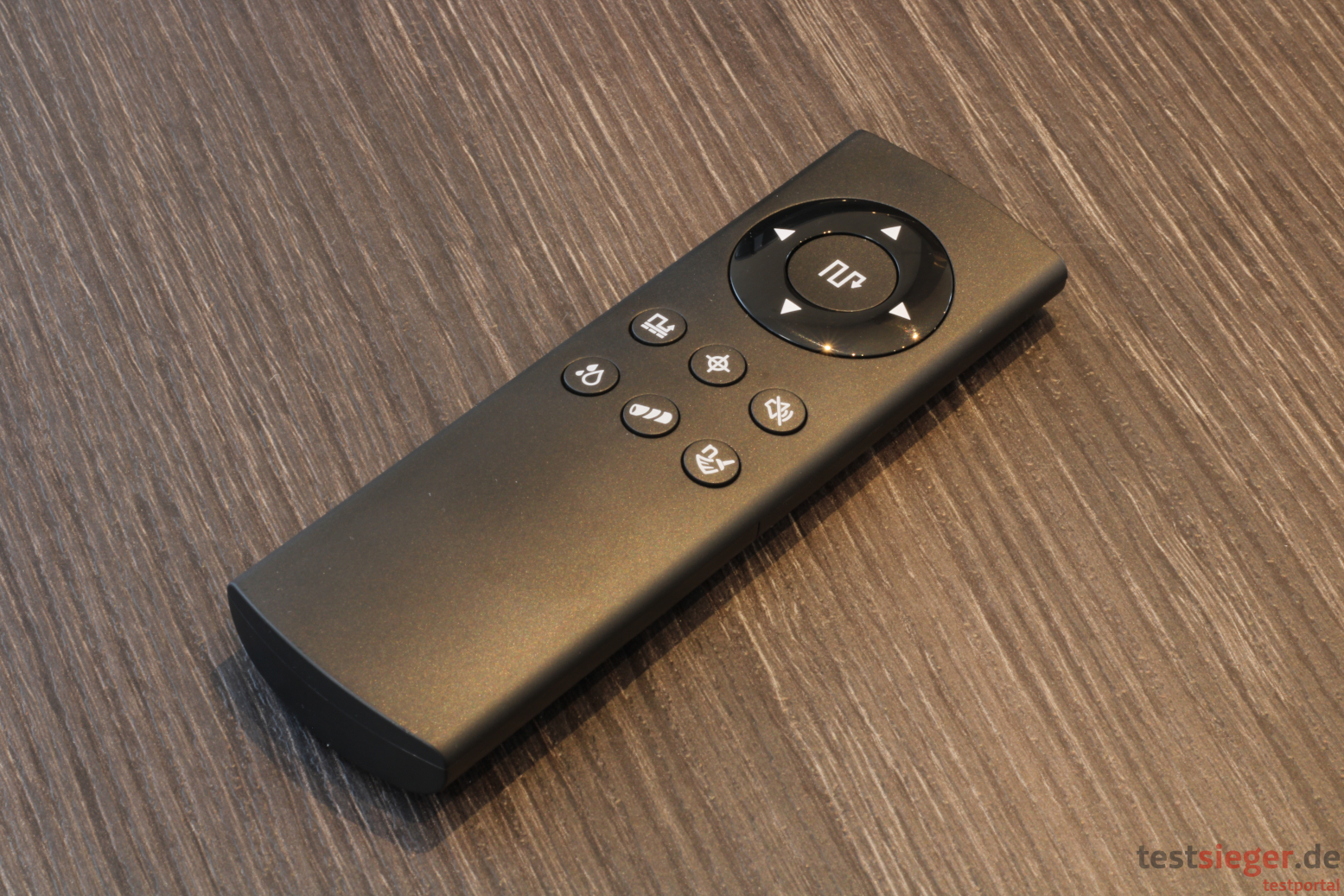 Die Fernbedienung ist angenehm kompakt und liegt sehr gut in der Hand. Die vier Pfeiltasten steuern den Roboter auf Wunsch auch manuell. Wen die englischen Ansagen des Roboters stören, der kann sie über die entsprechende Taste leise stellen. Wir empfinden sie aber als durchaus hilfreich, auch wenn wir uns eine deutsche Sprachausgabe gewünschte hätten. Wir finden auch in der App keine Möglichkeit, dies zu ändern.