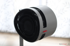 Beim Thema Sicherheit müssen sich gerade Eltern keine Sorgen machen. Das Rotorblatt sitzt hinter dem robusten Luftauslassgitter. Selbst wenn Kinder hier ihre Finger durchbekommen, reichen diese nicht bis zum Rotor. Zum Entfernen des Gitters müssen Nutzerinnen und Nutzer zunächst eine Schraube lösen. Der Stromverbrauch ist sehr niedrig. Nach 120 Minuten im Dauerbetrieb auf Stufe 20 zeigt unser Messgerät nicht einmal 0,1 kWh.