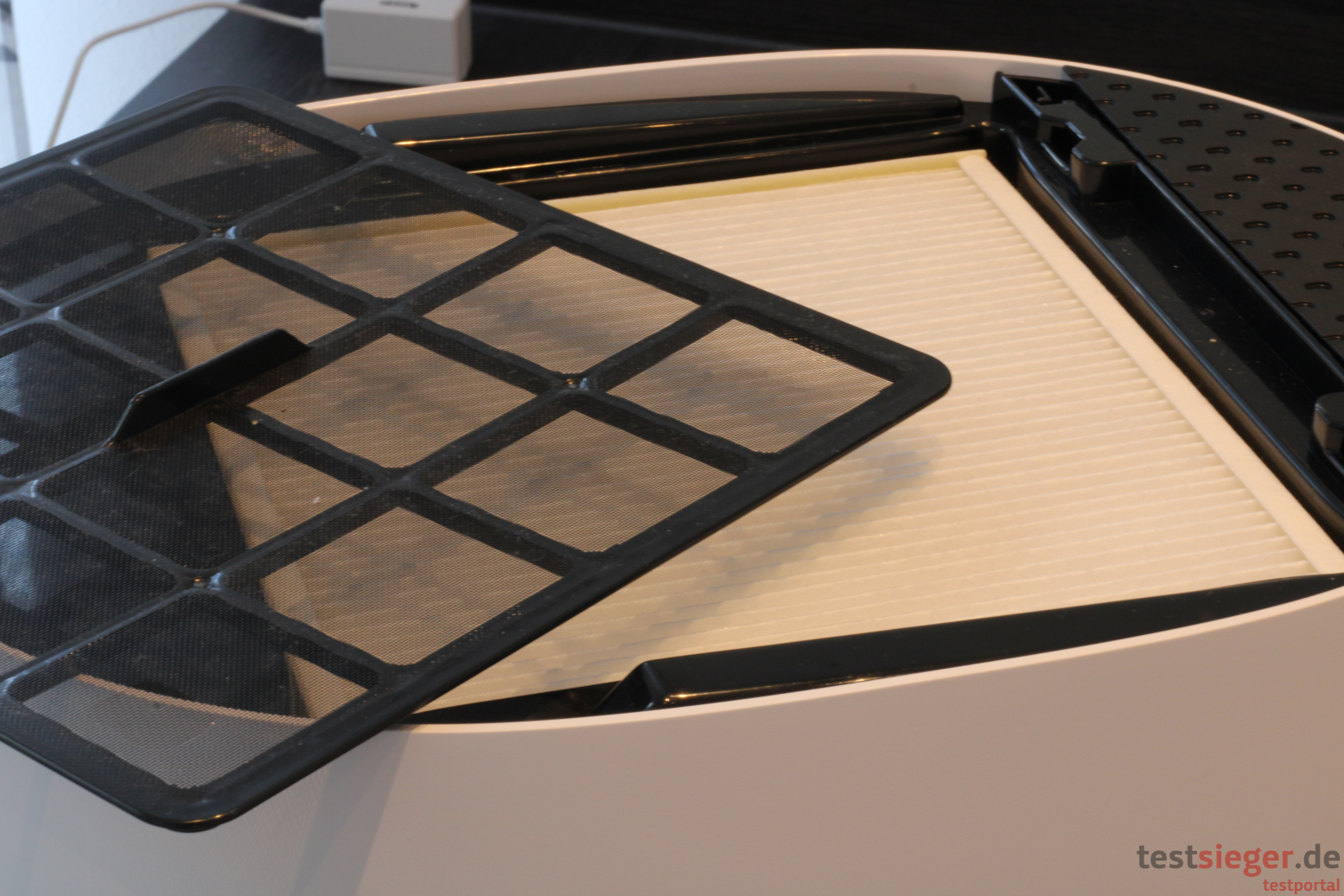 Die Reinigung geht insgesamt einfach von der Hand. Wasserwanne und Trommel sind spülmaschinenfest. Zuvor allerdings die Verdunstermatte abziehen. Diese lässt sich entweder im Waschbecken oder in der Waschmaschine bei 40 Grad wieder auf Vordermann bringen. Den Vorfilter können Nutzerinnen und Nutzer unter laufendem Wasser abschrubben. Der Pollenfilter muss allerdings von Zeit zu Zeit ausgetauscht werden, das Gleiche gilt für den Silver Stick. Hier entstehen also Folgekosten.