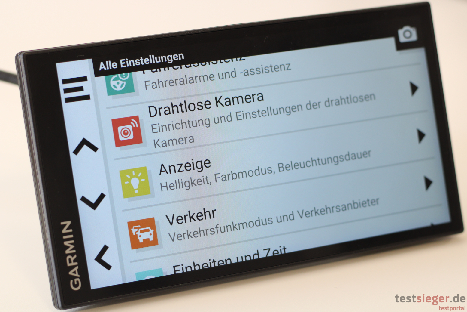 Die Ausstattung ist üppig und wir vermissen keine wichtigen Einstellungsmöglichkeiten. Wir können vor der Fahr viele Präferenzen festlegen, Fahrassistenzen zuschalten, uns über POI, Parkplätze oder Tankstellen informieren und die Displayanzeige anpassen. Einige Funktionen wie die Live-Verkehrsdaten stehen jedoch nur in Verbindung mit der kostenlosen Garmin-Drive-App für Android und iOS zur Verfügung. Zudem erhalten Nutzerinnen und Nutzer Infos über Spritpreise und können sich eingehende Nachrichten auf dem Smartphone anzeigen lassen. Die Kopplung der App per Bluetooth funktioniert sehr einfach, allerdings ist zuvor eine Registrierung nötig.