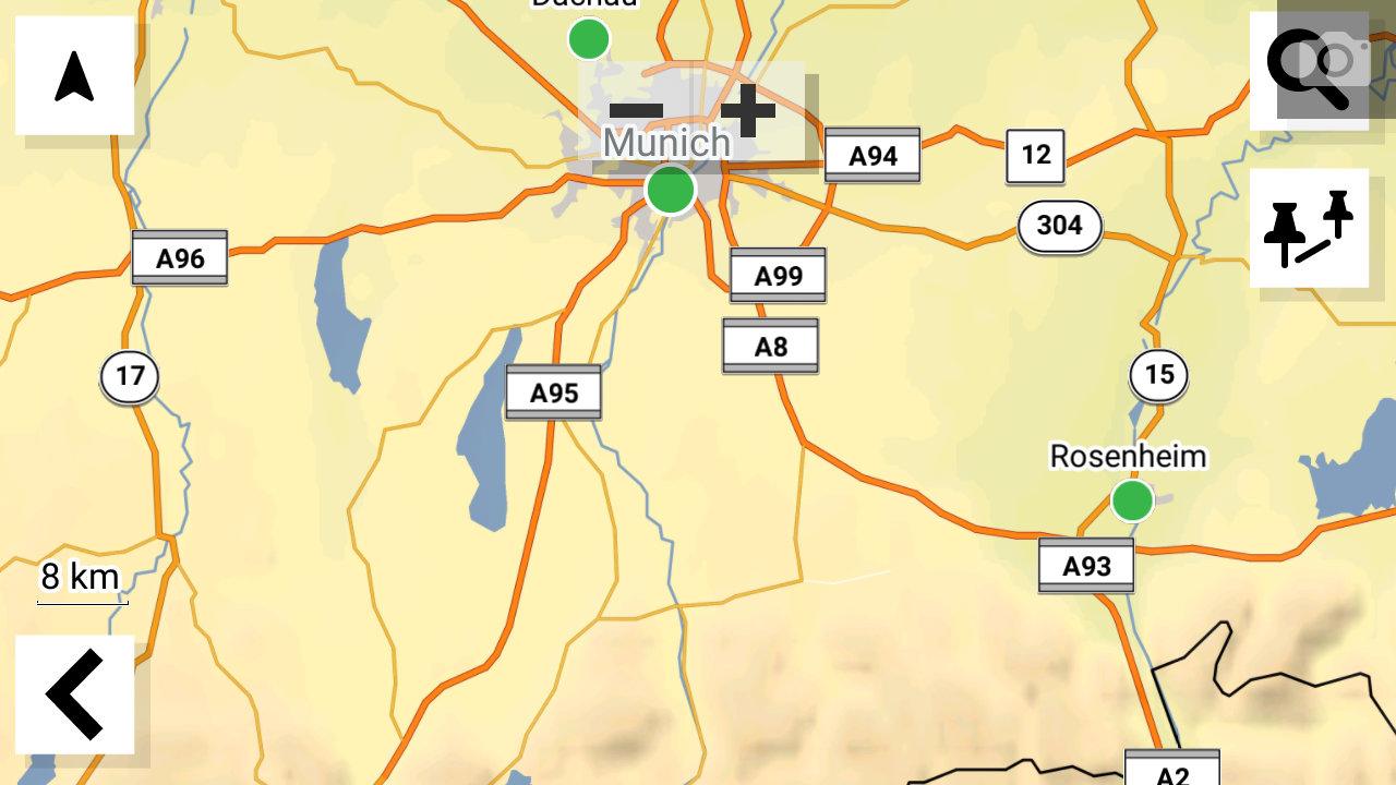 Die Bedienung erfolgt zu einem Großteil über den Touchscreen. Eine physische Taste auf der Rückseite und ist für das Ein- und Ausschalten des Navis zuständig. Der Knopf ist gut zu erreichen und auch während der Fahrt lässt er sich leicht erfühlen. Die zweite Taste befindet sich auf der Oberseite und aktiviert auf Wunsch die Amazon-Alexa-Unterstützung. Wie bereits erwähnt, funktioniert die Bedienung über den Touchscreen angenehm einfach. Die Buttons sind selbst auf der kleineren 6-Zoll-Variante angenehm groß und lassen sich auch während der Fahrt gut treffen, obwohl hier natürlich große Vorsicht geboten ist, um den Verkehr nicht aus den Augen zu verlieren.