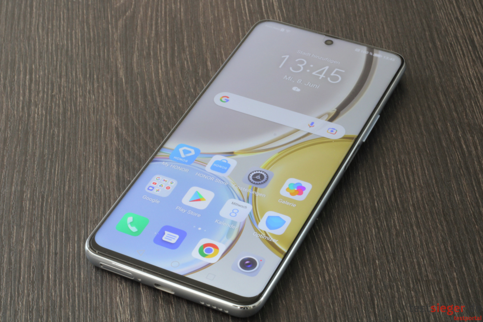 Die Stabilität ist gut. Selbst bei starkem Gegendruck von Ober- und Unterseite verbiegt sich das Gehäuse wenn überhaupt nur minimal. Wir vernehmen dabei keine unnatürlichen Knirsch- oder Knackgeräusche. Das Gewicht von knapp 190 Gramm geht in Ordnung, die Gewichtverteilung ist unserem Empfinden nach gut. Eine IP-Zertifizierung spart sich Honor allerdings. Nutzerinnen und Nutzer sollten bei eintretendem Regen also lieber etwas vorsichtiger sein.