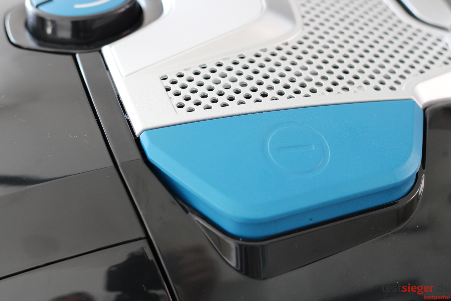 Optisch ähnelt der Staubsauger dem Princess 335010 EcoQuiet, den wir vor einiger Zeit bereits in der Redaktion begrüßen durften. Das Design ist klassisch, es dominieren schwarze Elemente, teilweise matt und teilweise in Klavierlackoptik gehalten. Etwas Silber und Türkis lockern die Gesamtoptik wohltuend auf. Die Verarbeitungsqualität hinterlässt insgesamt einen guten Eindruck. Das Gehäuse besteht vornehmlich aus Kunststoff. Hier gibt es wenig zu meckern, das Material wirkt wertig und wir entdecken keine Produktionsrückstände. Spitze, scharfe Kanten sind ebenfalls nicht vorhanden. Dementsprechend ist es auch nicht dramatisch, wenn der Sauger einmal härteren Kontakt mit den Möbeln aufnimmt. Da die Spitze jedoch nicht gummiert ist und auch keine andere Form von Dämmung besitzt, ist trotzdem etwas Vorsicht geboten.