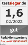 Wer einen klassischen Bodenstaubsauger mit Beutel sucht, macht mit dem Princess 01.334990.01.001 nichts falsch. Vor allem die Saugleistung überzeugt uns im Test. Auf Hart- und kurzflorigem Teppichboden nimmt der Sauger die meisten Verschmutzungen schnell auf. Nur die Düse schiebt den Dreck teilweise etwas vor sich her. Die Bedienung geht dabei einfach von der Hand, ein Vorteil ist der große Aktionsradius von bis zu 12 Metern. Die Lautstärke liegt in einem normalen Bereich, die Hygieneeigenschaften sind gut.