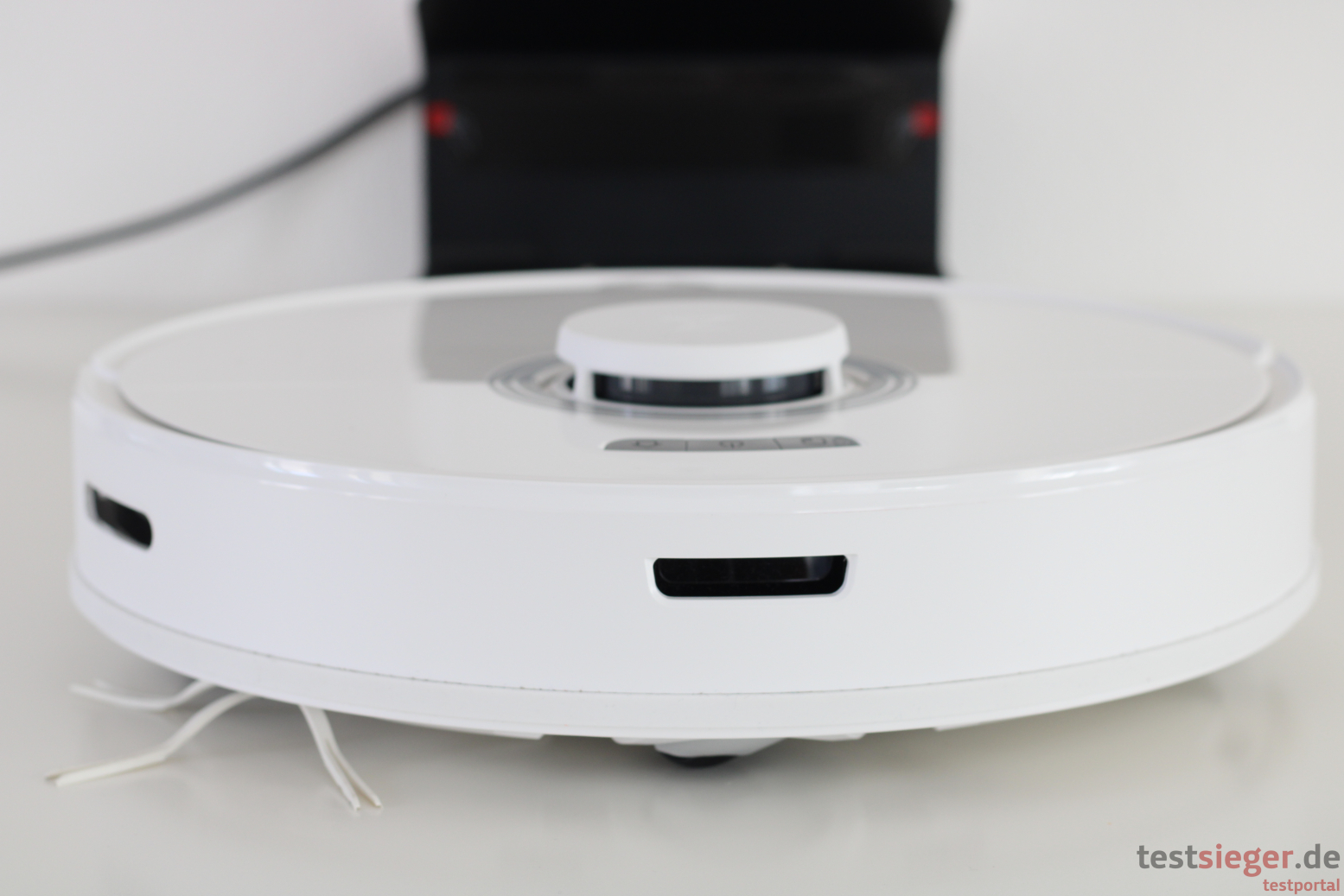Die Hinderniserkennung ist gut, wenn der Roborock doch einmal Kontakt zu Objekten aufnimmt, geht er dabei sehr sanft vor. Zudem mildert ein großer Stoßdämpfer den „Aufprall“ ab. Trotzdem ist es wie bei fast allen Staubsauger-Robotern sinnvoll, ihm eine möglichst weite Fläche zu bieten und beispielsweise Stühle auf den Tisch zu stellen. Der Q7 Max geht bei der Navigation sehr organisiert vor. Zunächst nimmt er sich einen begrenzten Bereich vor, fährt die Ränder ab und füllt die Flächen dann in Schlangenlinien auf. So saugt er schlussendlich den kompletten Boden mindestens einmal. Danach nimmt er sich den nächsten Bereich vor, bis er keine Freifläche mehr findet. Ist die Reinigung beendet oder der Staubbehälter voll, fährt er zielsicher zurück zur Ladestation.