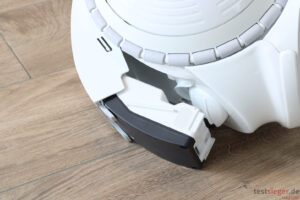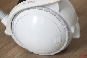 Der Staubauffangbehälter hat ein Volumen von 1 Liter und lässt sich über einen Hebel einfach aus dem Korpus entnehmen. Dann einfach den Deckel des Behälters nach oben klappen, den Filter über den Henkel herausziehen und der Staub liegt frei. Das funktioniert in der Praxis ordentlich, allerdings lässt es sich nicht vermeiden, dass wir hin und wieder mit Staub in Kontakt kommen. Hier wäre eine automatische Klappe auf der Unterseite etwas hygienischer. Der Zyklonfilter ist auswaschbar, sollte laut Rowenta aber trotzdem einmal pro Jahr erneuert werden. Hinzu kommt ein Motorfilter, den Nutzerinnen und Nutzer ebenfalls im Jahresturnus wechseln sollten. Laut dem Hersteller liegt die Gesamtfilterleistung bei 99,98 Prozent