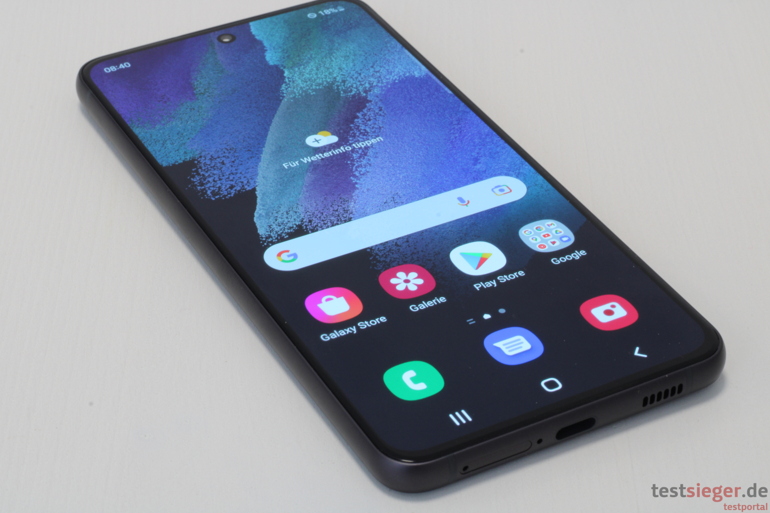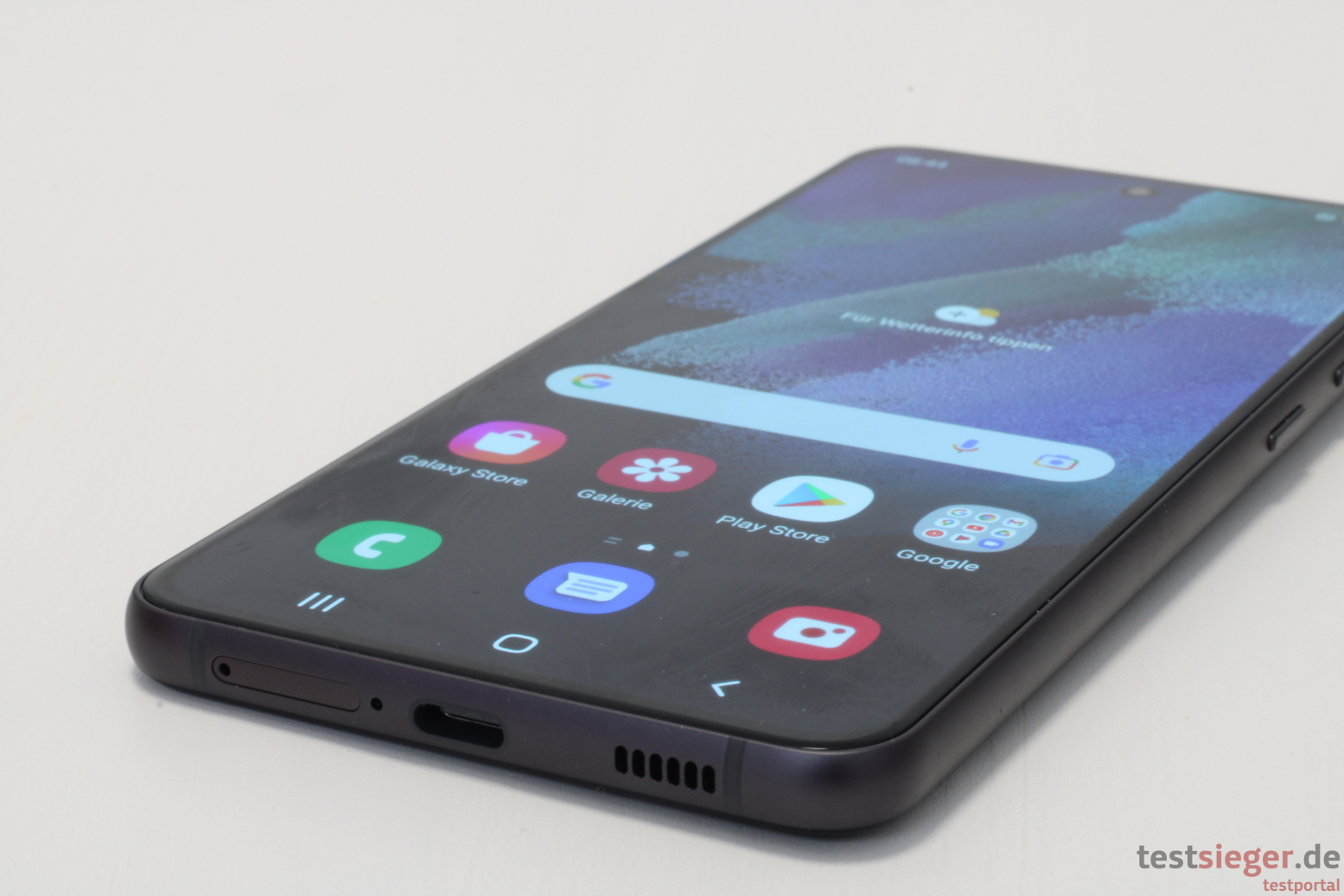 Die integrierten Stereo-Lautsprecher überzeugen durch einen guten, ausgewogenen Klang. Wir stellen keine Verzerrungen selbst bei höherer Lautstärke fest. In puncto Mobilfunkstandards und Drahtlosverbindungen ist alles vorhanden, was man sich von einem gehobenem Smartphone wünscht. Neben 5G unterstützt das Galaxy S21 FE den schnelleren WLAN-Standard WiFi 6E und Bluetooth in der Version 5.2. Letzteres ist beim Anschließen von Kopfhörern wichtig, da ein 3,5-mm-Klinkenanschluss fehlt. Wer gerne noch Kabelhörer verwendet, benötigt einen USB-C-Adapter.