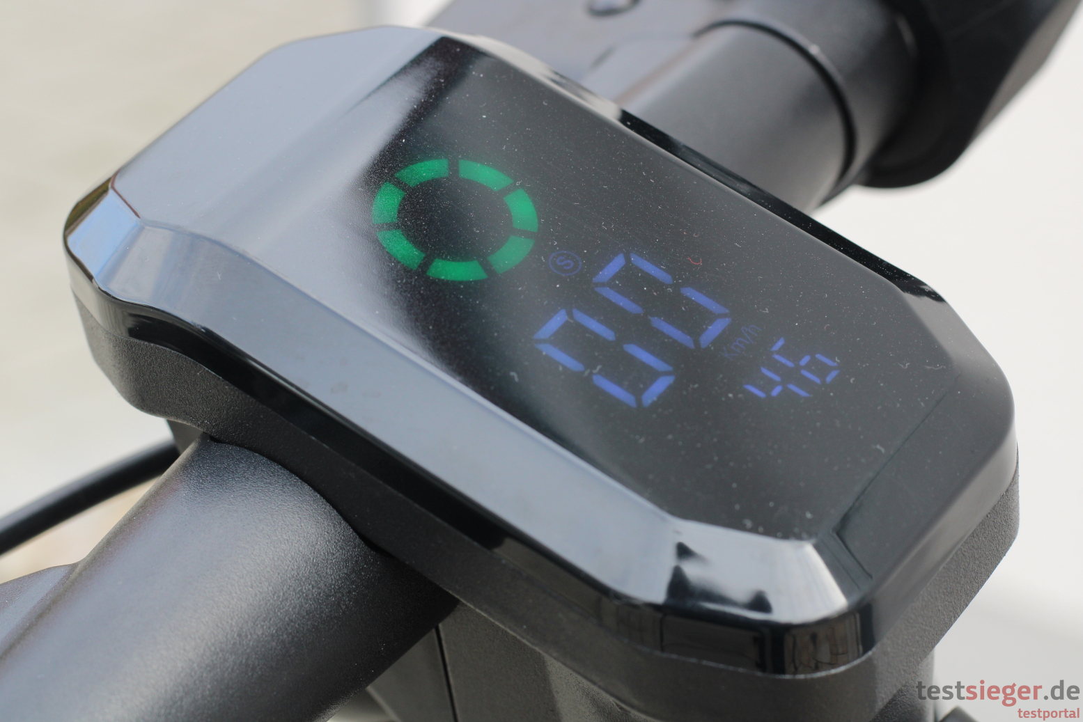 Ein Manko hat der VX2 ST jedoch: Die Lenkstange ist nicht höhenverstellbar. Das kann für besonders große oder kleine Personen auf Dauer unangenehm sein. Auch das Display hat leider kleine Schwächen. So können wir die roten Anzeigen kaum erkennen. Das betrifft das rote S des Sportmodus sowie die rote Ladenanzeige des Akkus. Im Tageslicht sieht das Display an diesen Stellen dann einfach leer aus – und dabei testen wir in milder Herbstsonne.