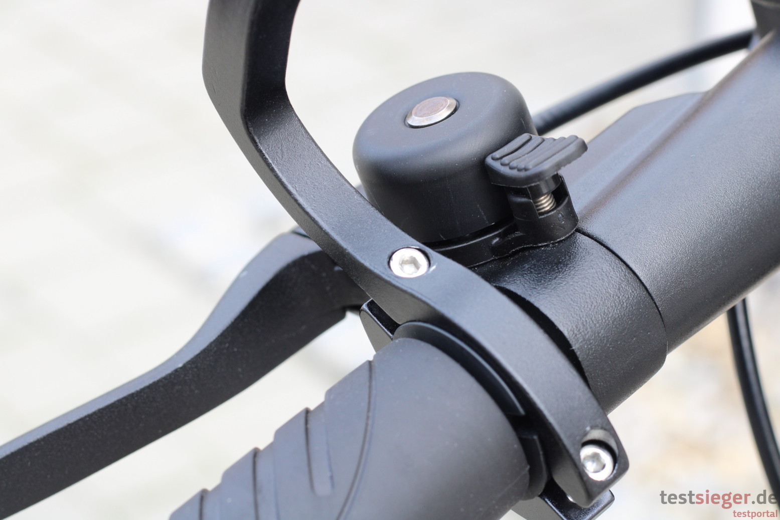 Hinweis: Laut dem Hersteller kann es vereinzelt vorkommen, dass der Haken, der die zurückgeklappte Stange am hinteren Schutzblech fixiert, etwas zu weit hinten angebracht ist. Somit hält die Stange nicht fest. Da uns das während unserer Testphase nicht passiert ist, können wir es jedoch nicht bewerten. Um das Probem zu beheben, können Nutzerinnen und Nutzer das hintere Blech abschrauben und die Position des Hakens anpassen. Über das Kontaktformular auf der Herstellerwebsite, können Betroffene direkt mit dem Support Kontakt aufnehmen.