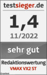 Der VMAX VX2 ST hält im E-Scooter-Test, was er verspricht. Er bietet hohen Fahrkomfort und ist dabei sehr leise. Auch wird die vom Hersteller angegebene maximale Reichweite von 45 Kilometern trotz hoher Beanspruchung noch übertroffen – hervorragend. Wer seinen E-Scooter jedoch häufig transportieren und etwa in Bus oder Bahn mitnehmen will, sollte zu einem leichteren Modell greifen. Denn mit 18,5 Kilogramm ist der VX2 ST recht schwer. Für alle anderen, die viel fahren und den hohe Anschaffungspreis von 950 Euro nicht scheuen, ist der VX2 ST eine sehr gute Wahl. Von uns gibt es eine klare Kaufempfehlung, vorausgesetzt Nutzerinnen und Nutzer sind nicht vom Problem mit dem nicht schließenden Haken betroffen.