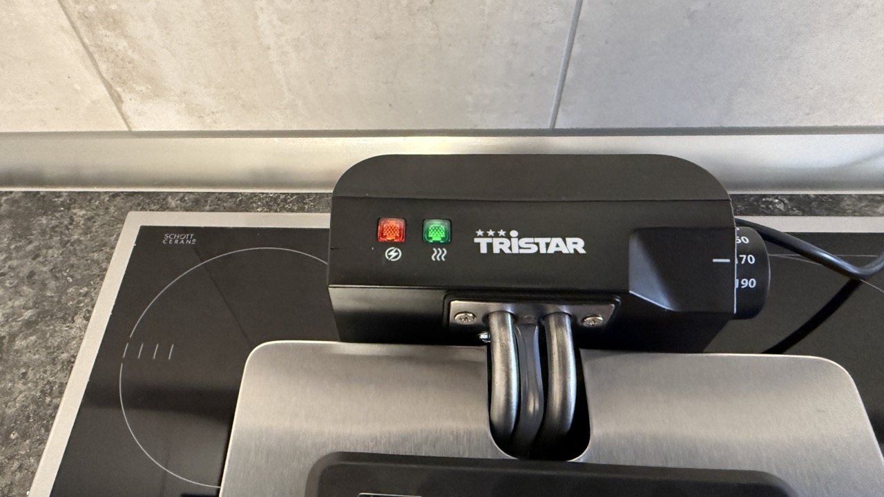 In Bezug auf die Lautstärke ist die Tristar FR-9327 sehr gut. Wir messen im Schnitt etwa 50 Dezibel, was im Vergleich zu einer Heißluftfritteuse sehr leise und unauffällig ist. Das Betriebsgeräusch stört also kaum, und man kann sich problemlos nebenbei unterhalten, ohne dass die Fritteuse stört.