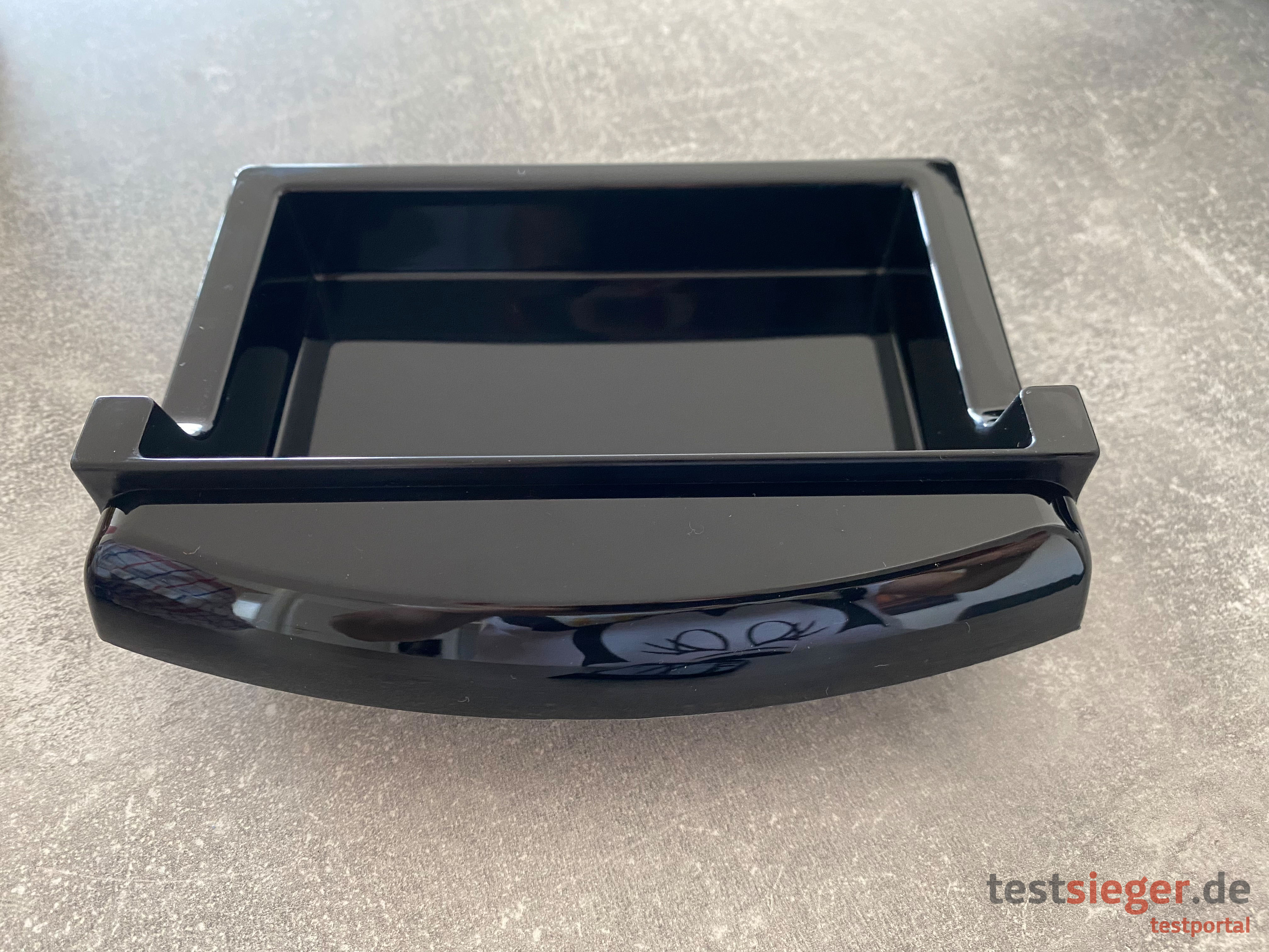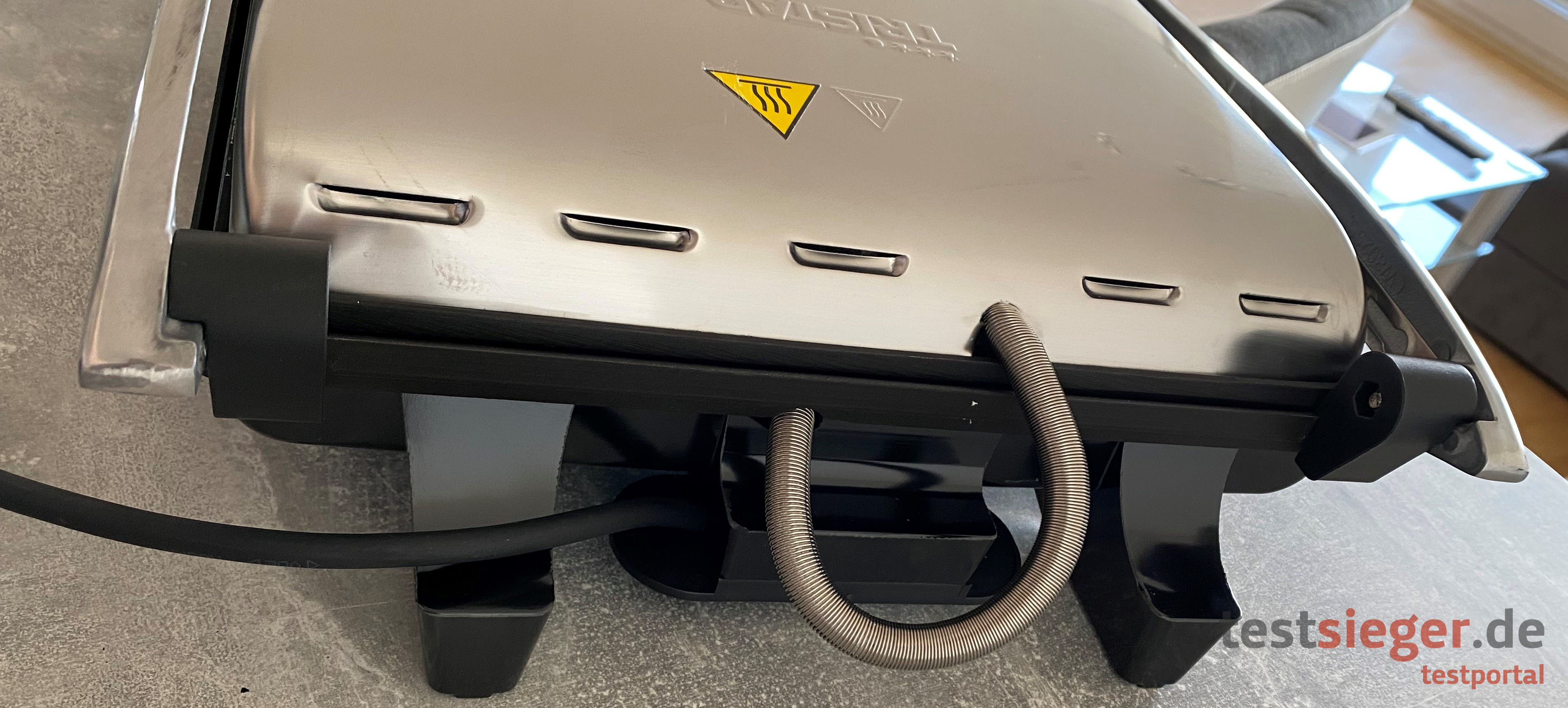Die Reinigung gestaltet sich sehr einfach. Die nicht herausnehmbaren, erkalteten Platten wischen wir mit einem feuchten Lappen ab. Für eine besonders gründliche Reinigung am Ende unseres Tests wischen wir Rille für Rille aus. Rückstände kann der Nutzer aber auch mit dem mitgelieferten Spachtel aus den Rillen in die Fettauffangschale schieben. Die Auffangschale leeren und reinigen wir anschließend mit etwas Spülmittel und einer Geschirrbürste. Der Hersteller erwähnt leider nicht, ob die Schale spülmaschinenfest ist. Da dies ohnehin das einzige abnehmbare Element ist, finden wir das nicht weiter schlimm.