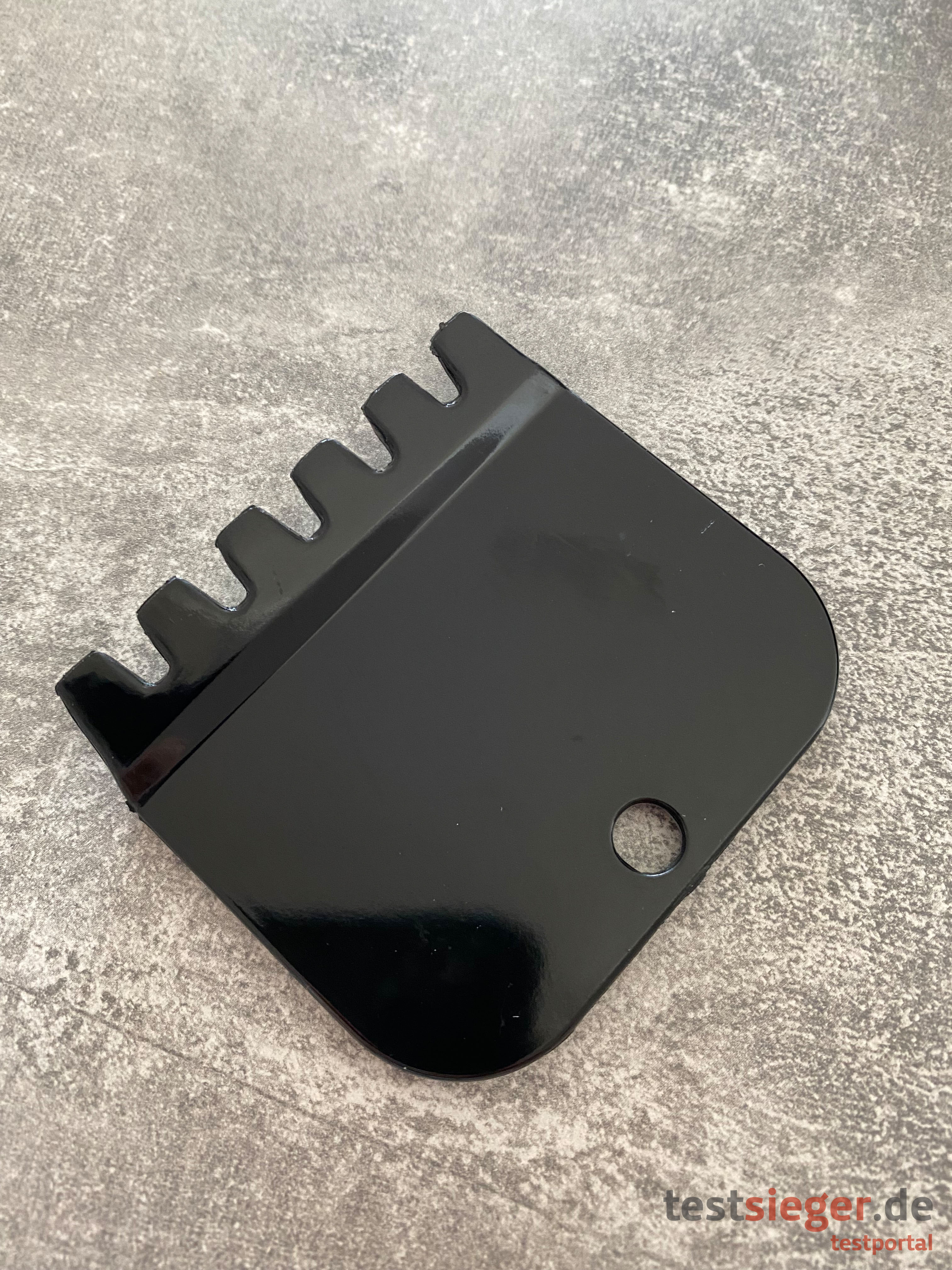 Die Reinigung gestaltet sich sehr einfach. Die nicht herausnehmbaren, erkalteten Platten wischen wir mit einem feuchten Lappen ab. Für eine besonders gründliche Reinigung am Ende unseres Tests wischen wir Rille für Rille aus. Rückstände kann der Nutzer aber auch mit dem mitgelieferten Spachtel aus den Rillen in die Fettauffangschale schieben. Die Auffangschale leeren und reinigen wir anschließend mit etwas Spülmittel und einer Geschirrbürste. Der Hersteller erwähnt leider nicht, ob die Schale spülmaschinenfest ist. Da dies ohnehin das einzige abnehmbare Element ist, finden wir das nicht weiter schlimm.