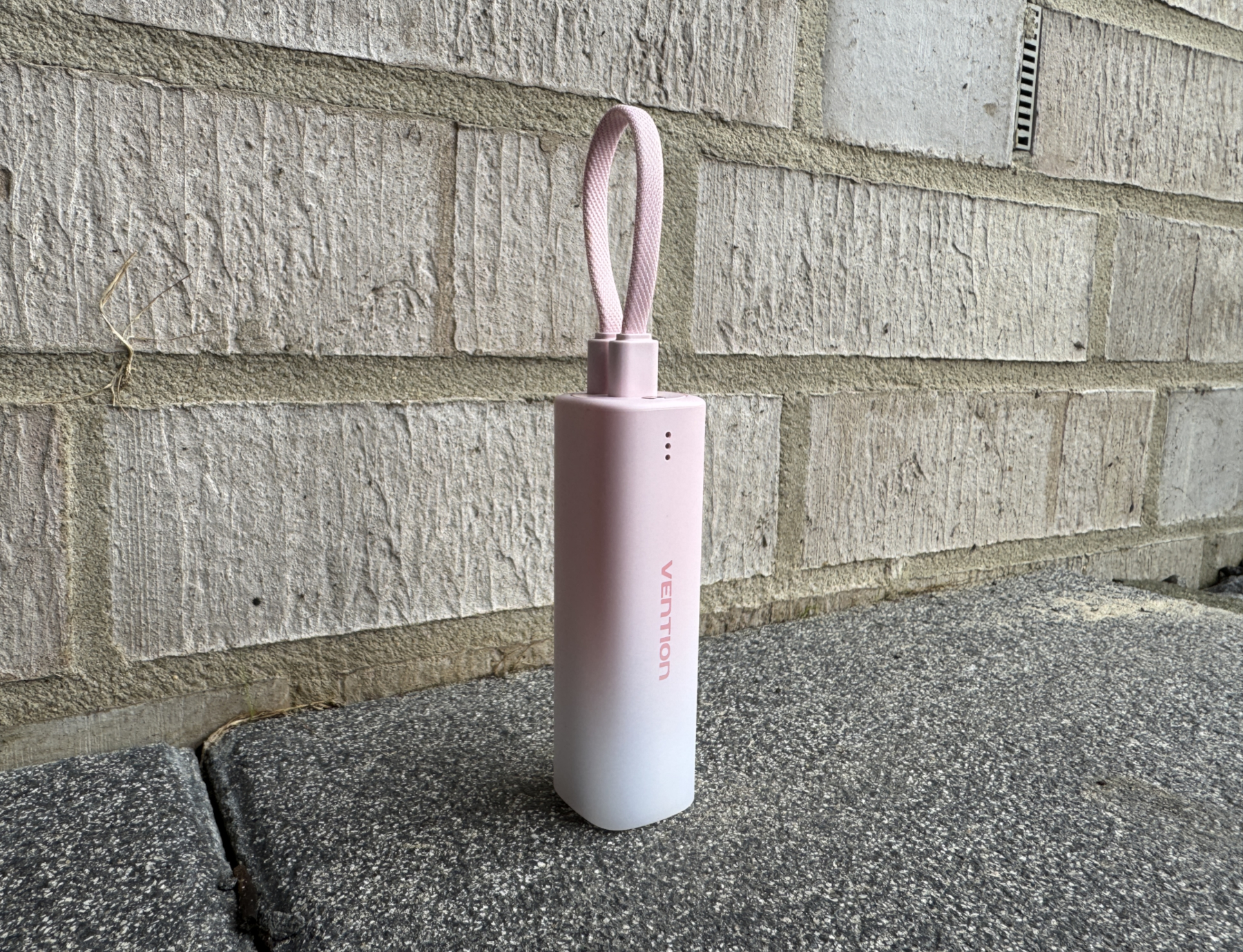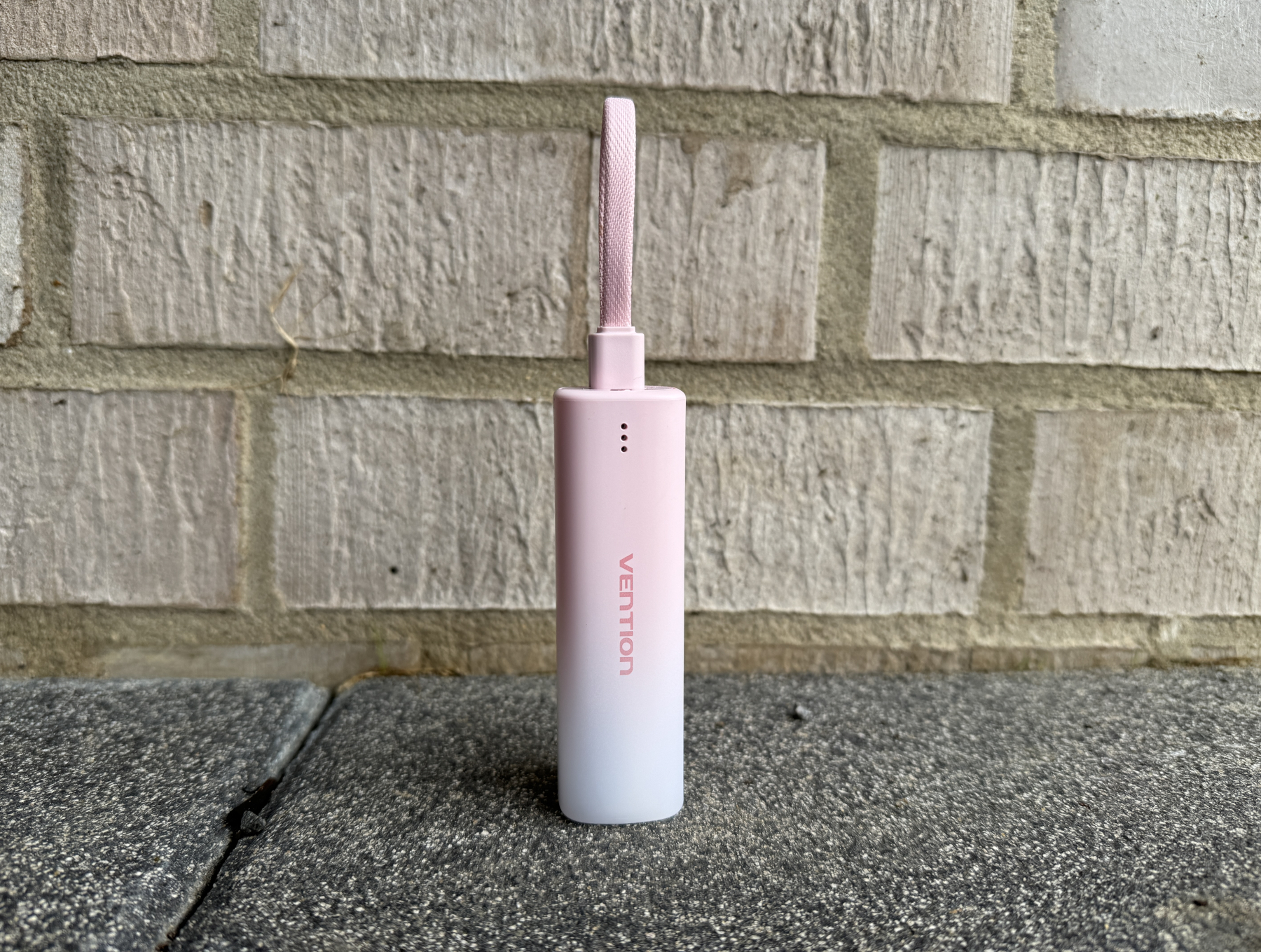 Das Design und die Verarbeitungsqualität der Vention Powerbank sind zwei der herausragenden Merkmale dieses Geräts. Mit einer Höhe von nur 30 Millimetern und einer Länge von knapp 100 Millimetern ist sie kaum größer als ein Textmarker oder ein größerer Lippenstift. So passt sie problemlos in jede Hosentasche.Unsere Testmodelle kommen in einem attraktiven Blau- und Pinkton, der in einem sanften Farbverlauf von dunkel zu hell verläuft. Diese Optik spricht uns sehr an, auch wenn die Farbe natürlich keinen Einfluss auf die Bewertung hat. Neben Blau ist die Vention Powerbank außerdem in Grau und Gelb erhältlich, sodass für jeden Geschmack etwas dabei ist.