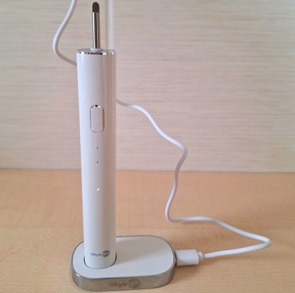 Die WhyteDOT WD.1 erreicht im Test eine Akkulaufzeit von rund 100 Minuten bei normaler Nutzung. Bei 2 Durchgängen à 2 Minuten pro Tag entspricht das einer Laufzeit von rund 25 Tagen – ein guter Wert, der für den Alltag und auch für Reisen ausreicht.