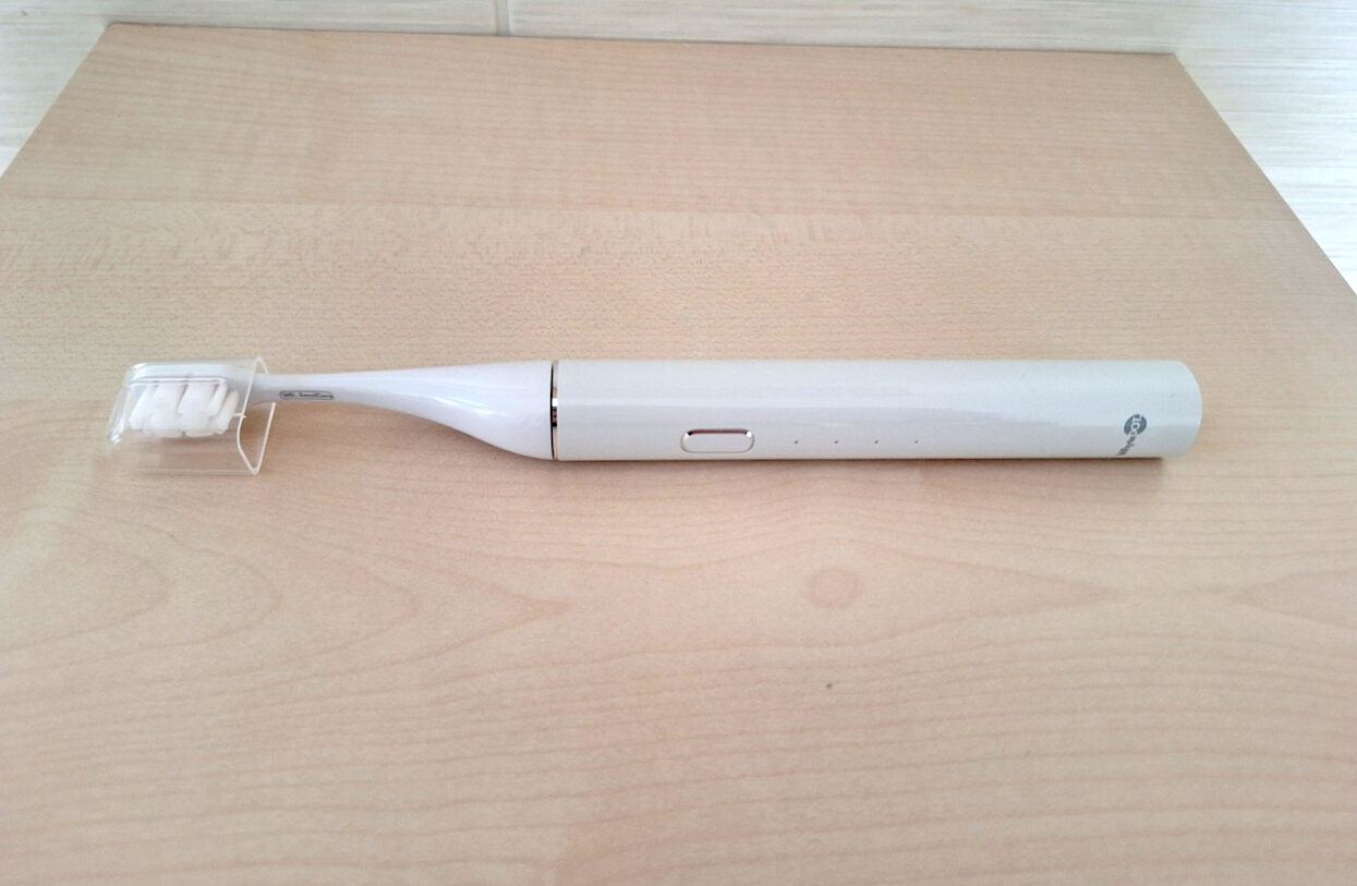 Die Bedienung der WhyteDOT WD.1 ist weitgehend intuitiv. Es gibt lediglich eine Taste, die das Gerät startet und den Modus durchschaltet. Nach einer kurzen Eingewöhnung findet sich jeder problemlos zurecht. Die Quickstart-Anleitung unterstützt dabei spürbar und macht die Inbetriebnahme unkompliziert. Im Alltag erweist sich die schlanke Bauform als klarer Vorteil: Die Zahnbürste liegt auch bei längerem Putzen bequem in der Hand, ohne zu ermüden.