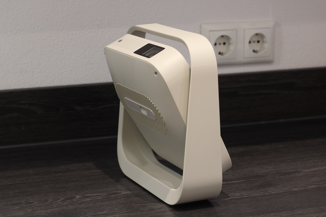 Bereits auf den ersten Blick zeigt sich der XGIMI Elfin Flip als durchdachtes Gerät. Im zusammengeklappten Zustand eignet er sich mit kompakten Abmessungen von 23,5 x 22 x 6,5 Zentimetern (Höhe x Breite x Tiefe) und einem Gewicht von 1,2 Kilogramm ideal für den mobilen Einsatz. Der Beamer passt problemlos in einen größeren Rucksack und lässt sich dadurch leicht transportieren. Bei kleineren Taschen wird es jedoch eng.