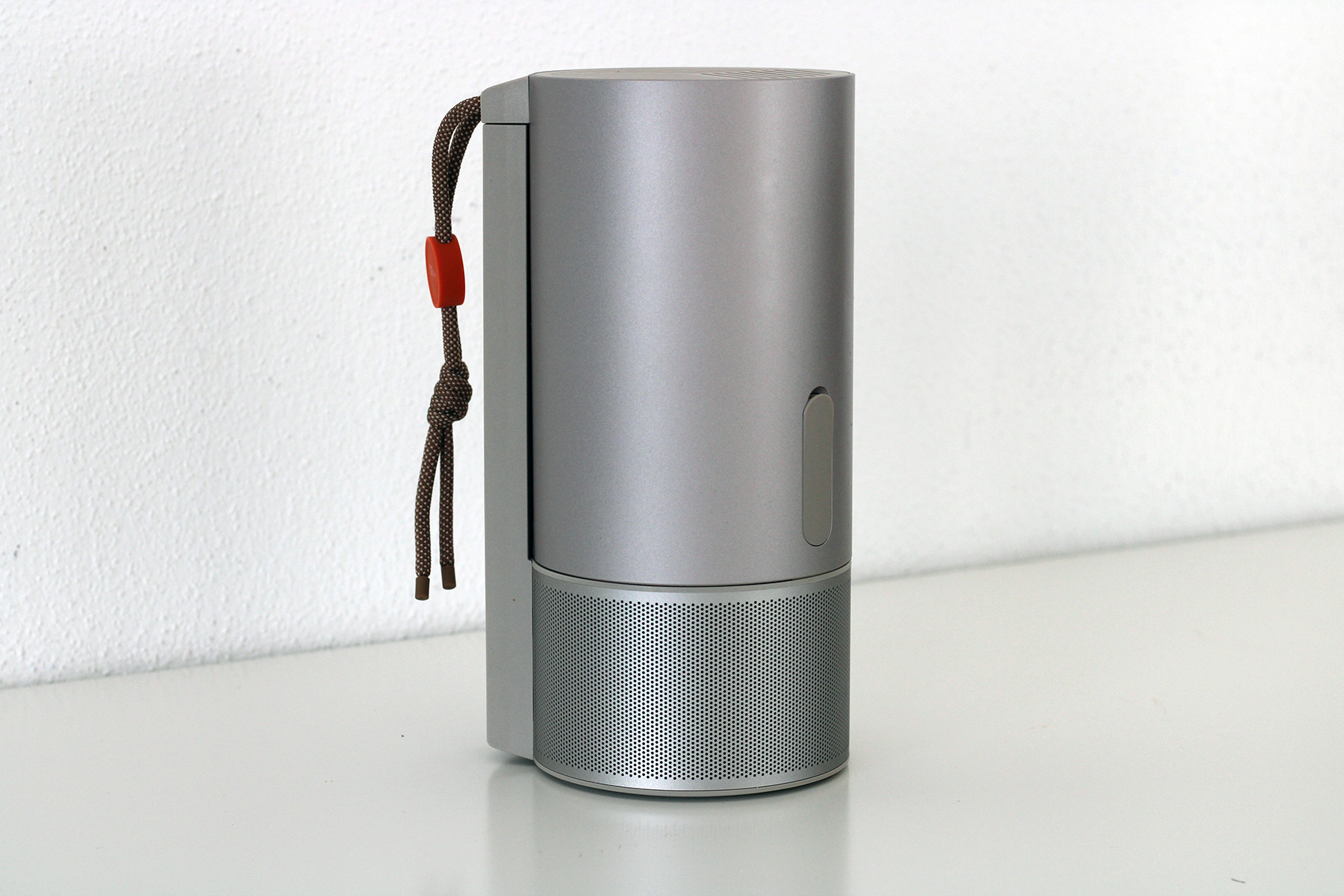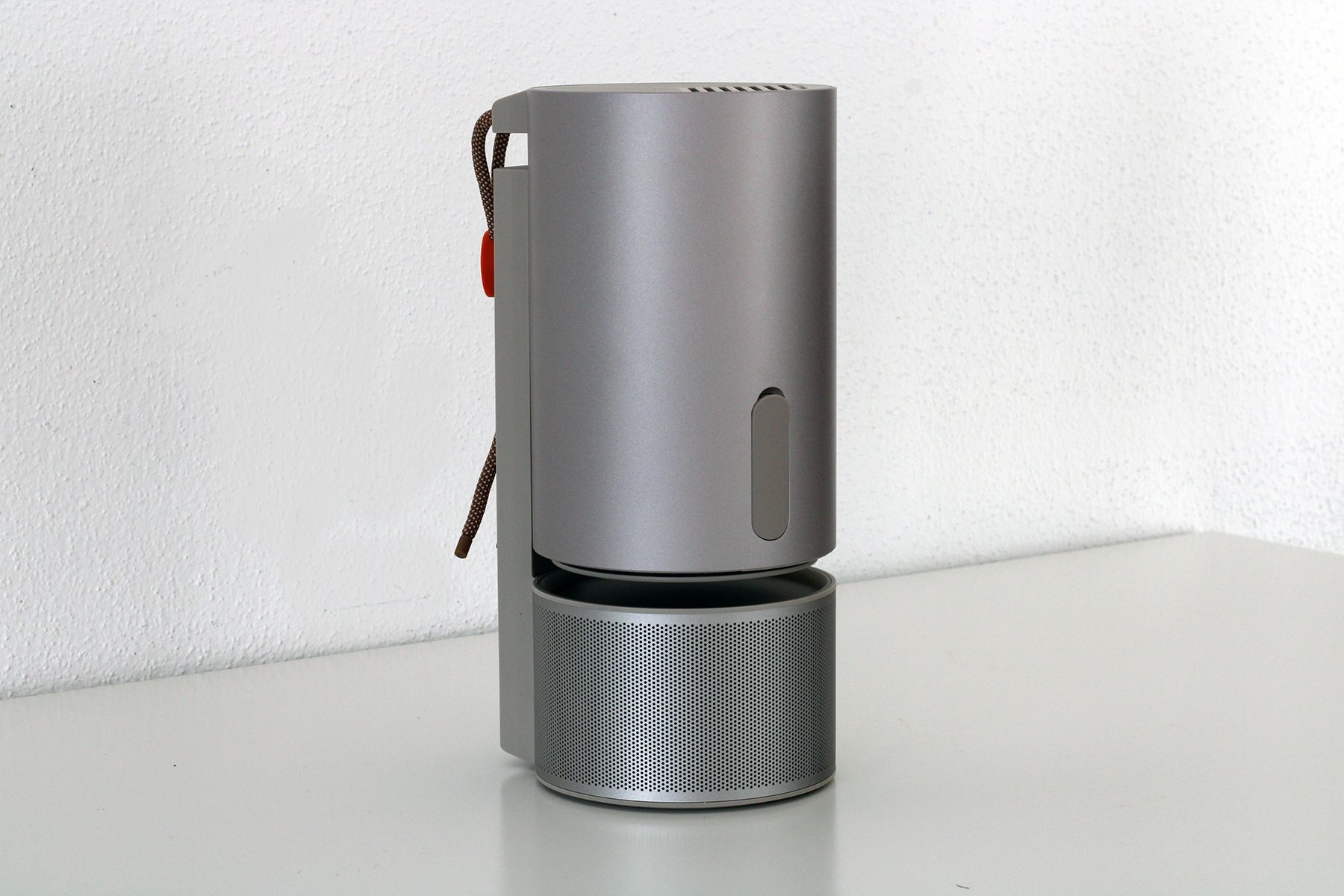 Das Design ist sicherlich eine der größten Neuerungen im Vergleich zum XGIMI MoGo 2 Pro. Im Vergleich zur quaderförmigen Bauweise kommt der 3 Pro jetzt im runden Design. Mit einer Höhe von 20,5 Zentimetern und einem Durchmesser von 9,5 Zentimetern ist er angenehm kompakt und passt in jeden Rucksack. Das Gewicht von 1,1 Kilogramm ist zwar spürbar, aber liegt noch absolut im Rahmen, um das Reisegepäck nicht zu schwer zu belasten.