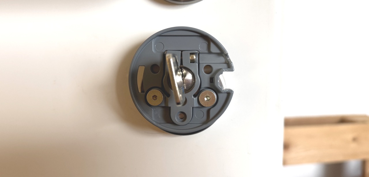 Wiederum sehr einfach ist die Demontage. Wir können Schloss und Montageplatte einfach mit einem Imbus entfernen und das Schloss in seinen ursprünglichen Zustand bringen.