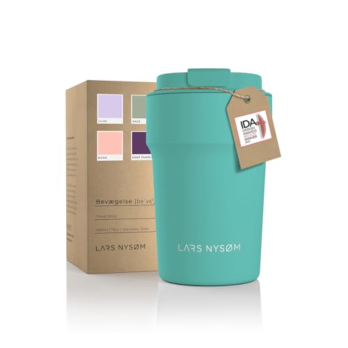 LARS NYSØM Thermo Kaffeebecher to go 380ml | Travel Mug 0,38 Liter mit Isolierung | Auslaufsicherer Edelstahl Thermobecher für Kaffee und Tee unterwegs | Teebecher (Aqua Turquoise, 380ml)