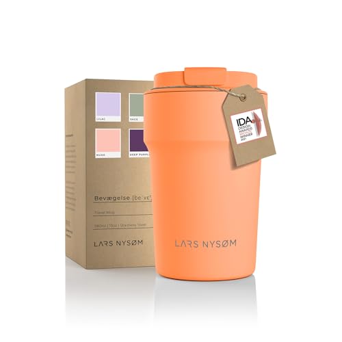 LARS NYSØM Thermo Kaffeebecher to go 380ml | Travel Mug 0,38 Liter mit Isolierung | Auslaufsicherer Edelstahl Thermobecher für Kaffee und Tee unterwegs | Teebecher (Pumpkin Orange, 380ml)