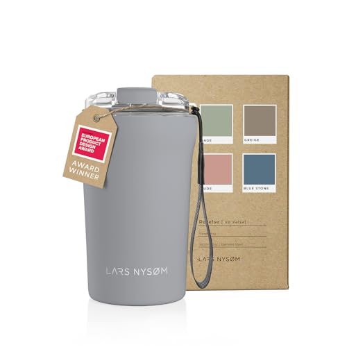 LARS NYSØM Thermo Kaffeebecher to go mit Trageschlaufe & Tritan Deckel | Travel Mug 0,38 Liter mit Vakuumisolierung | Edelstahl Thermobecher für Café & Tee (Ash Gray, 380ml)