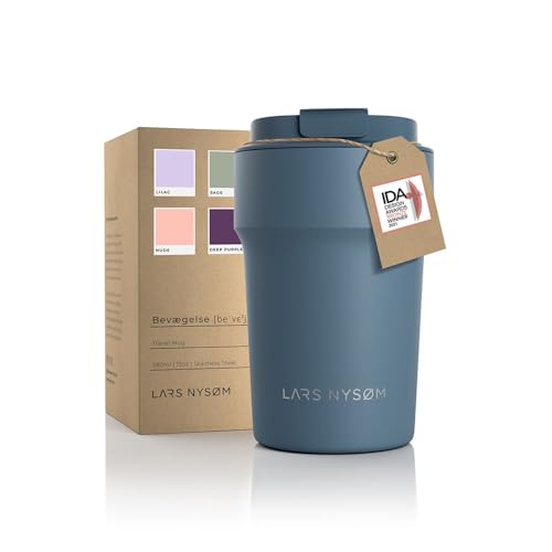 LARS NYSØM Thermo Kaffeebecher to go 380ml | Travel Mug 0,38 Liter mit Isolierung | Auslaufsicherer Edelstahl Thermobecher für Kaffee und Tee unterwegs | Teebecher (Stone Blue)