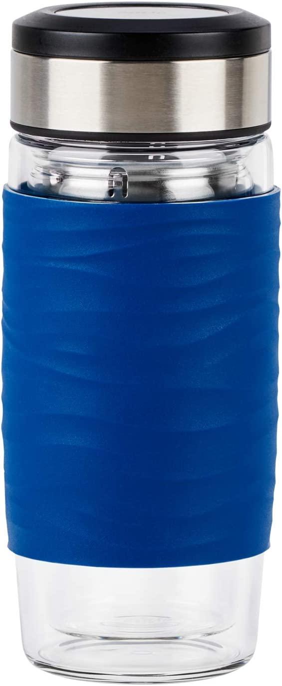 | Name | EMSA 'Tee Mug' Teebecher mit Sieb, doppelwandiges Glas, Silikonmanschette, blau, 400 ml |