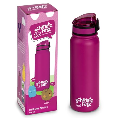 Die Schmatzfatz Trinkflasche für Kinder hat eine ansprechende Optik und einen praktischen Schnappverschluss. Während die Thermoeigenschaften von einigen Nutzern als gut bewertet werden, berichten viele von Undichtigkeiten und der Unfähigkeit, Getränke über längere Zeit warm zu halten. Zudem können Verfärbungen und Kratzer auftreten.