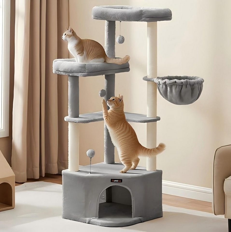 | Name | Feandrea Kratzbaum, Katzenbaum, 48,5 x 48,5 x 140,7 cm, Katzenkratzbaum mit großer Kuschelhöhle, großen Plattformen, Plüschbällen, Liegemulde, Taubengrau |