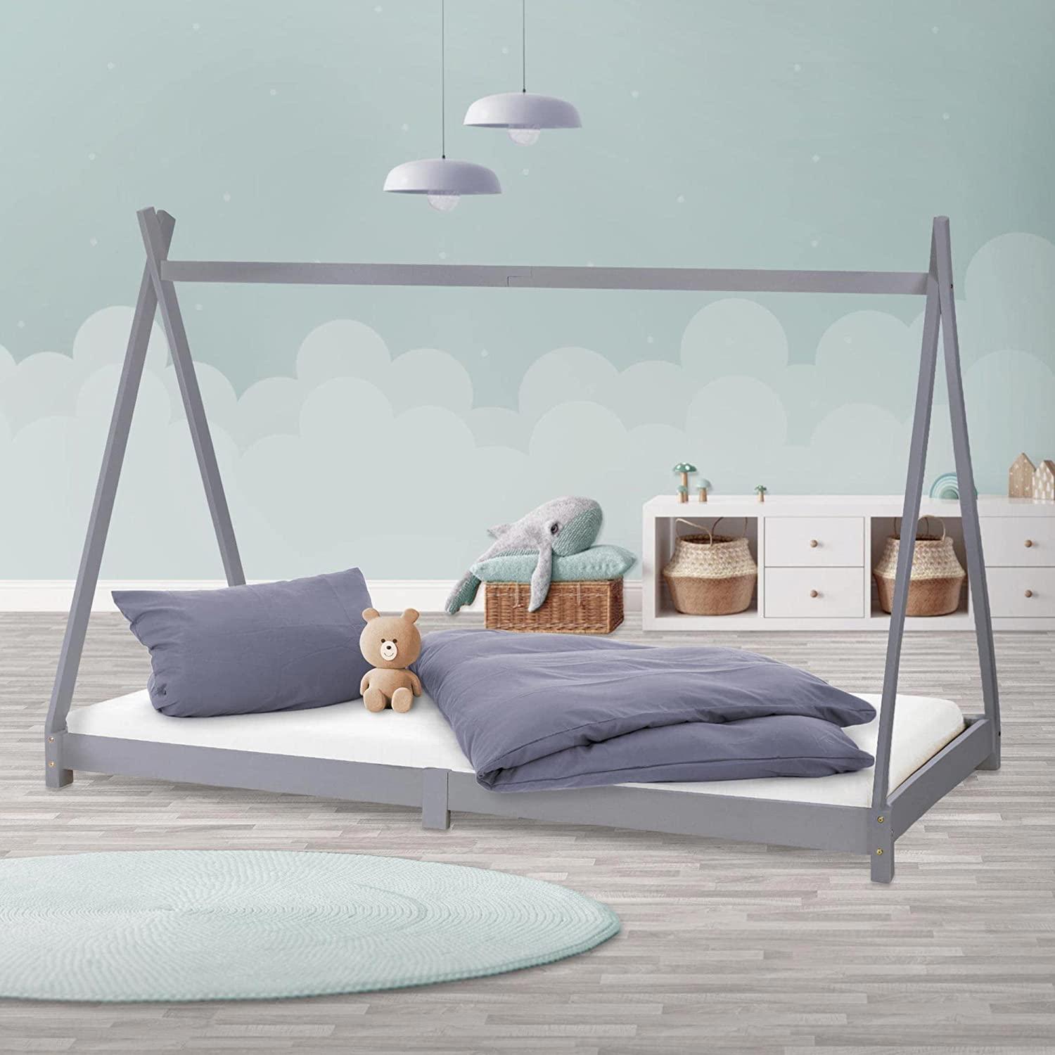 | Name | ML-DESIGN Spielbett Hausbett Tipi Zeltbett inkl. Lattenrost Bodenbett Kinder Himmelbett, Abenteuerbett zum Spielen Zelt Kinderbett Kiefer Bettenhaus Bett Grau |