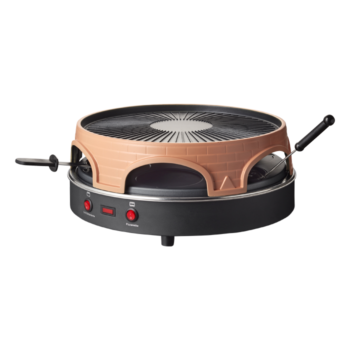 Bietet ein patentiertes Design für Mini-Pizzen und Raclette, ideal für gesellige Abende mit bis zu 6 Personen.