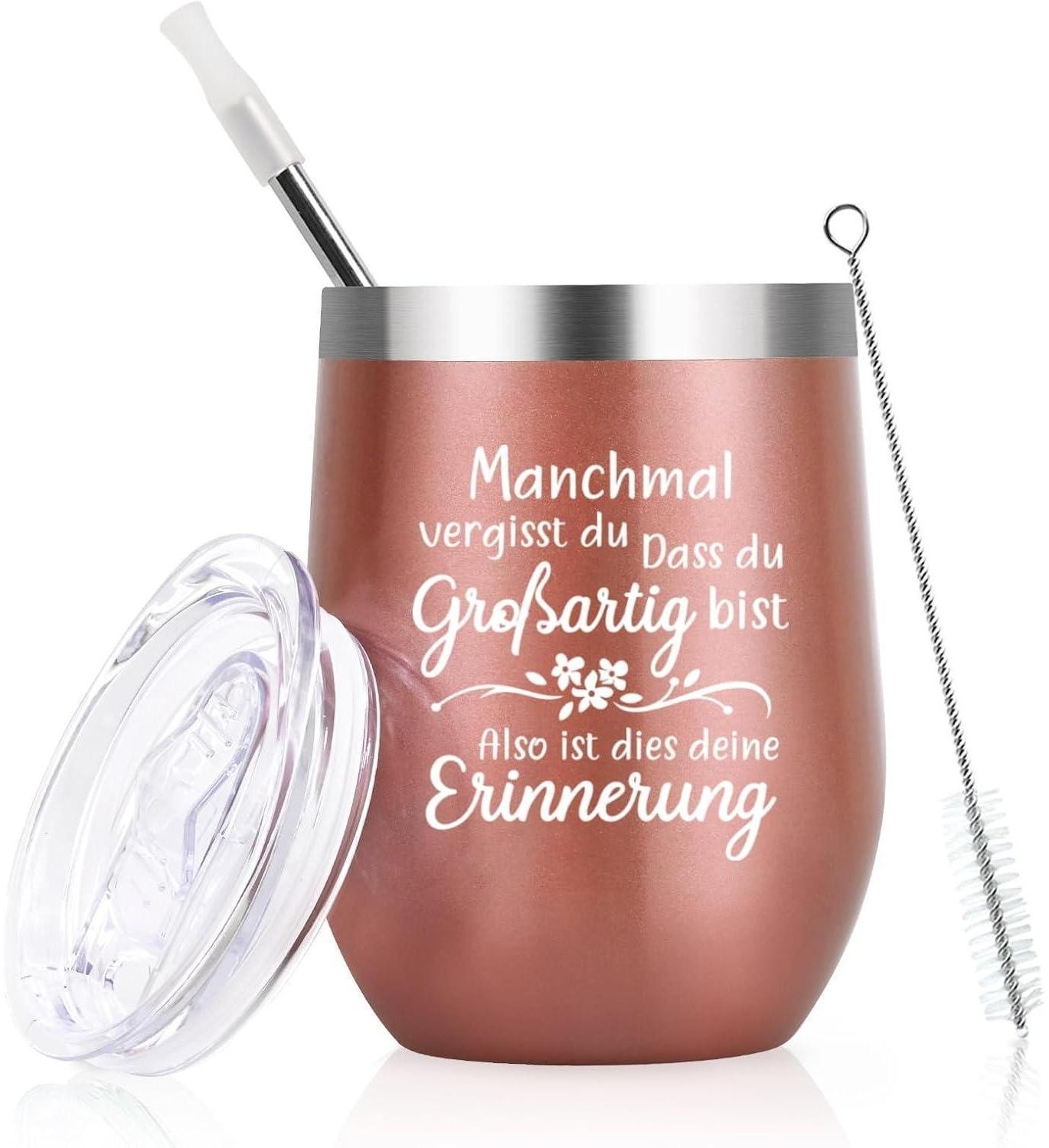 Der Livole 350 ml Edelstahl Camping Becher to go ist der perfekte Begleiter für unterwegs. Mit seinem wärmeisolierenden Design hält er Getränke bis zu 3 Stunden warm und bis zu 9 Stunden kalt. Der Becher wird mit einem umweltfreundlichen Edelstahl Strohhalm, einem Strohhalmreiniger und einem Reinigungsschwamm geliefert, was die Reinigung besonders einfach macht. Das ergonomische Design sorgt für einen bequemen Griff, egal ob beim Camping, Sport oder Reisen. **Highlights** - Wärmeisolierendes Design: Hält Getränke bis zu 3 Stunden warm oder 9 Stunden kalt - Leicht zu reinigen: Inklusive umweltfreundlichem Edelstahl Strohhalm und Reinigungszubehör - Ergonomisches Design: Bequemer Griff für verschiedene Anwendungen - Hochwertige Präsentation: Ideal als Geschenk für Freunde und Familie - Inspirierender Text: Motiviert und erinnert an die eigene Stärke **Produkteigenschaften** - Material: Edelstahl - Volumen: 350 ml - Doppelt isoliert: Hält Getränke lange warm oder kalt - Inklusive Reinigungsschwamm für einfache Pflege **Lieferumfang** - 1 x Edelstahl Camping Becher to go - 1 x Edelstahl Strohhalm - 1 x Strohhalmreiniger - 1 x Reinigungsschwamm