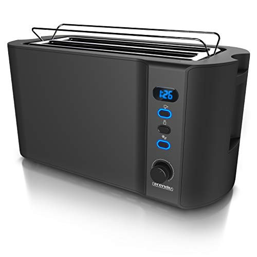 Das Gerät bietet eine praktische Lösung für alle, die gerne mehrere Toastscheiben gleichzeitig zubereiten möchten. Mit der Defrost-Funktion können gefrorene Brotscheiben schnell und einfach aufgetaut werden, während die Aufwärm-Funktion dafür sorgt, dass bereits getoastetes Brot wieder warm wird. Das moderne Design und das klar ablesbare Display mit Restzeitanzeige machen den Einsatz angenehm und zeitsparend.
