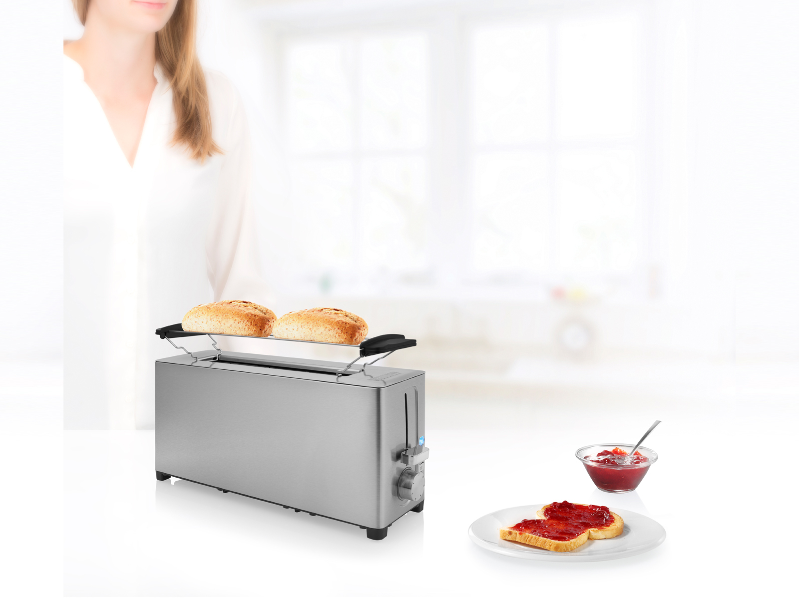 Dieser Langschlitztoaster eignet sich ideal für Haushalte oder Büros, in denen regelmäßig Toast zubereitet wird. Dank der großen Größe können auch dickere Brotscheiben problemlos geröstet werden. Die einfache Nutzung macht ihn besonders attraktiv für Menschen, die auf unkomplizierte Technik setzen. Allerdings sollten Verbraucher darauf achten, dass sie beim Entnehmen der Toastscheiben vorsichtig sind, da einige Kunden Schwierigkeiten damit hatten.