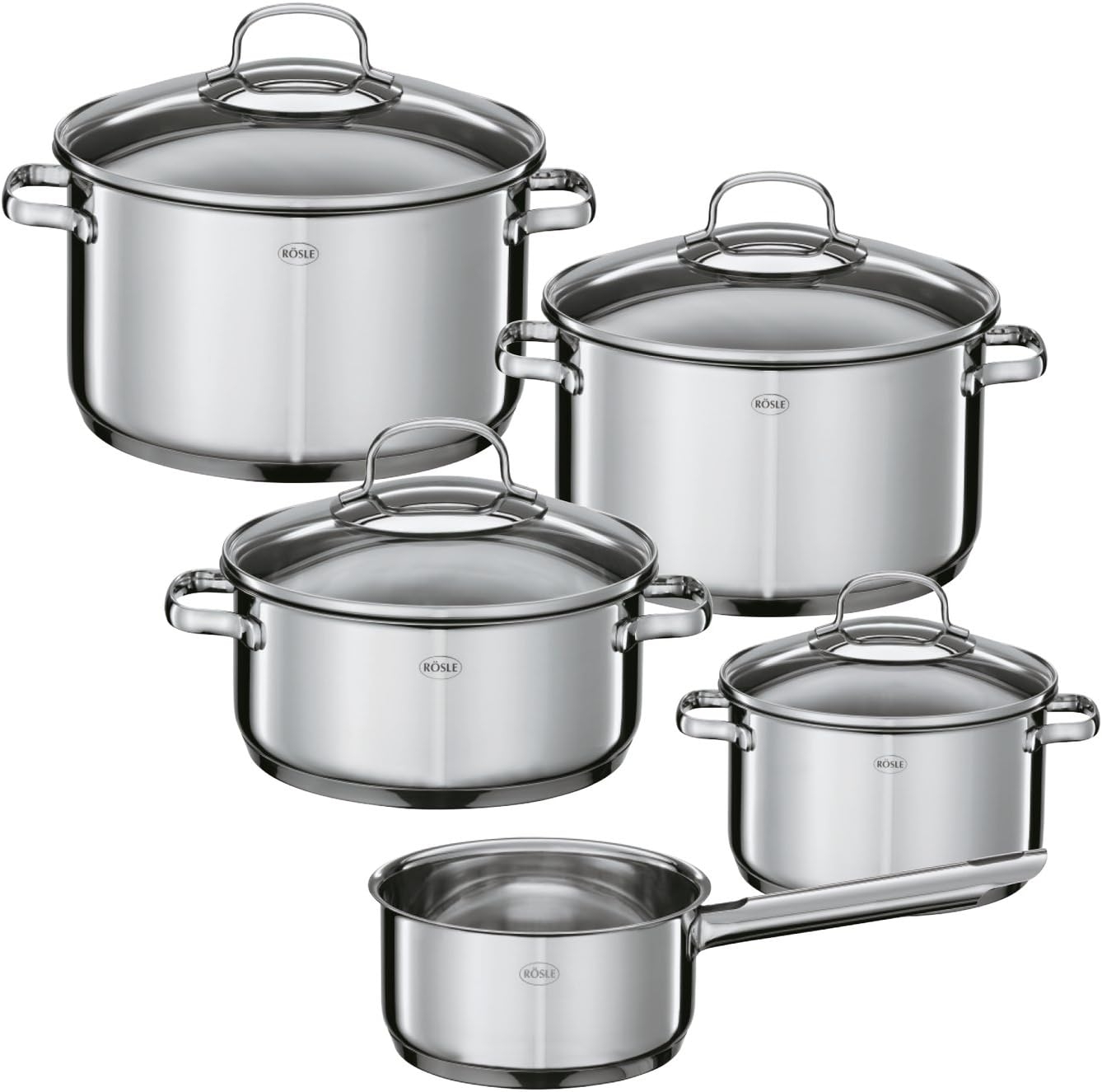 | Name | Rösle ELEGANCE Topfset, 5-tlg, Edelstahl 18/10, mit Glasdeckel, Innenskalierung, induktionsgeeignet |