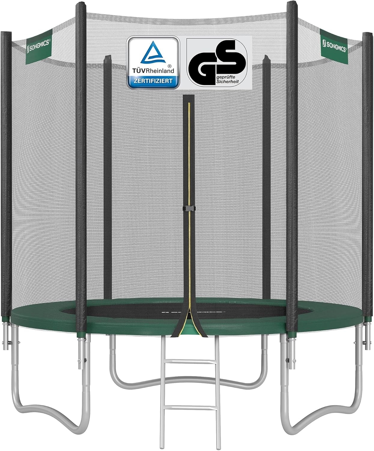 | Name | Songmics Trampolin mit Sicherheitsnetz, Leiter und gepolsterten Stangen, schwarz-grün, Ø 183 cm |