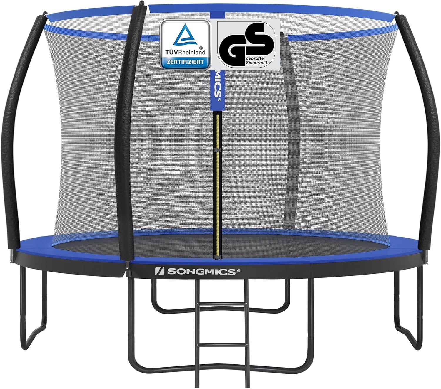 | Name | Songmics Trampolin mit Leiter, Sicherheitsnetz und gepolsterten Stangen, Stahl blau, Ø 366 cm |