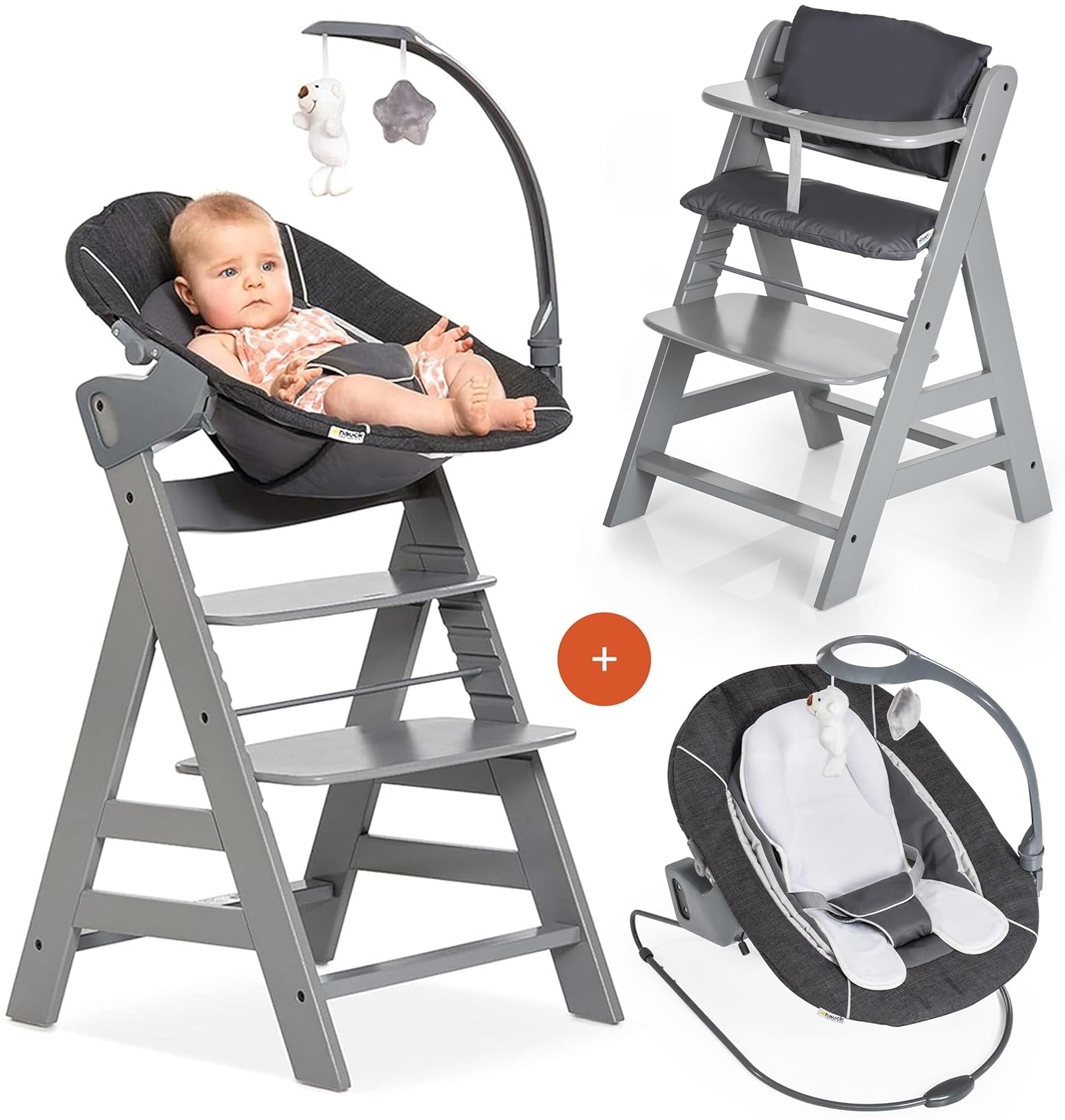 | Name | Hauck Alpha Plus Grau Newborn Set Deluxe - Baby Holz Hochstuhl ab Geburt mit Liegefunktion - inkl. Aufsatz für Neugeborene & Sitzpolster - mitwachsend, verstellbar - Grau |