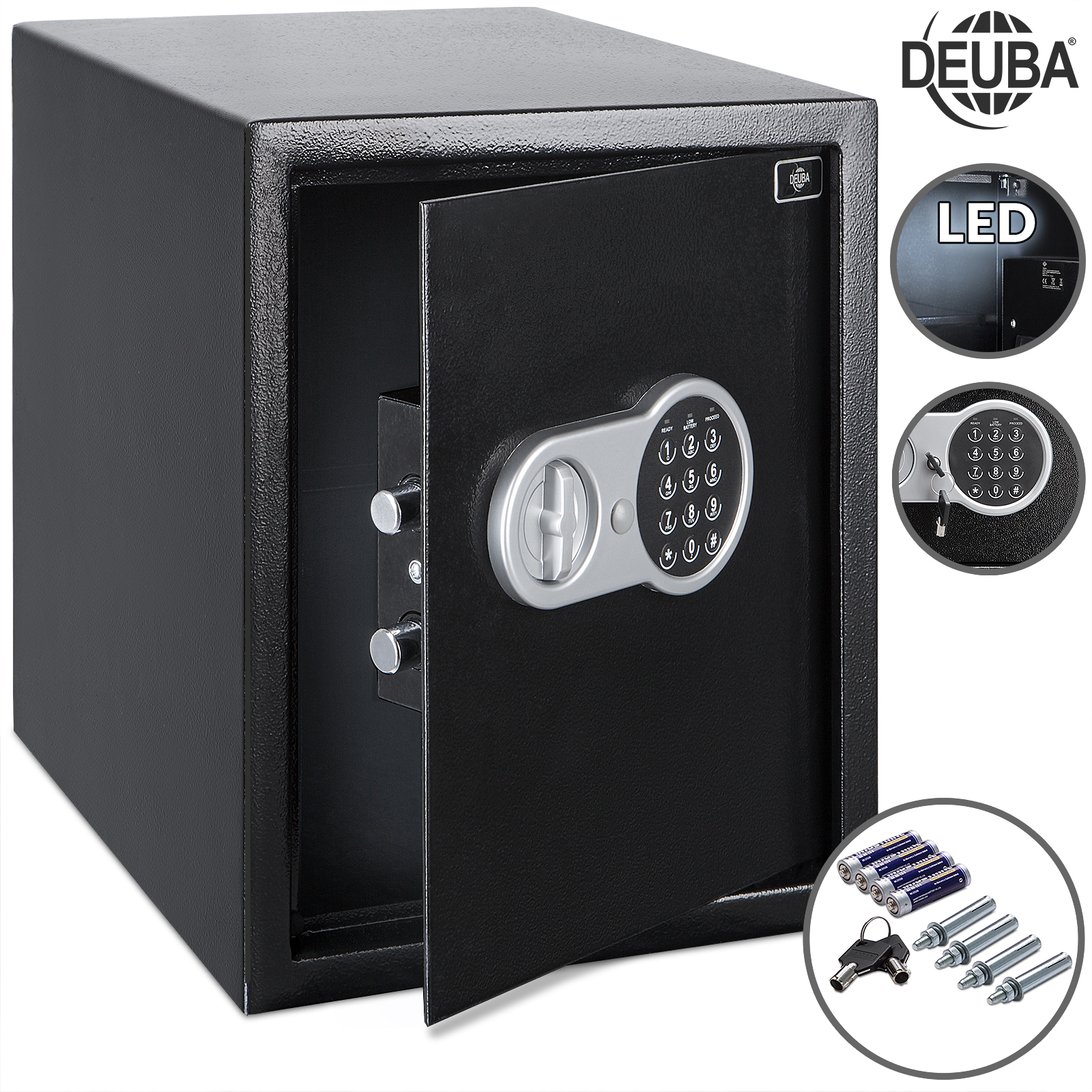 Der Deuba Tresor mit Elektronik Zahlenschloss bietet Ihnen die Möglichkeit, Ihre Wertgegenstände sicher und geschützt aufzubewahren. Mit einer Innenbeleuchtung für bessere Sichtbarkeit und Doppelstahlbolzen für zusätzliche Sicherheit, können Sie beruhigt sein, dass Ihre Wertsachen gut geschützt sind.