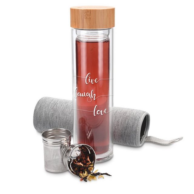 Diese Trinkflasche bietet eine elegante und praktische Lösung für die Aufbewahrung von heißen und kalten Getränken. Durch das doppelwandige Glas wird die Temperatur der Getränke länger gehalten, was besonders bei Tee von Vorteil ist. Zudem sorgt ein integriertes Teesieb für eine unkomplizierte Zubereitung von losen Teeblättern, während der tropfsichere Deckel dafür sorgt, dass keine Flüssigkeit ausläuft.