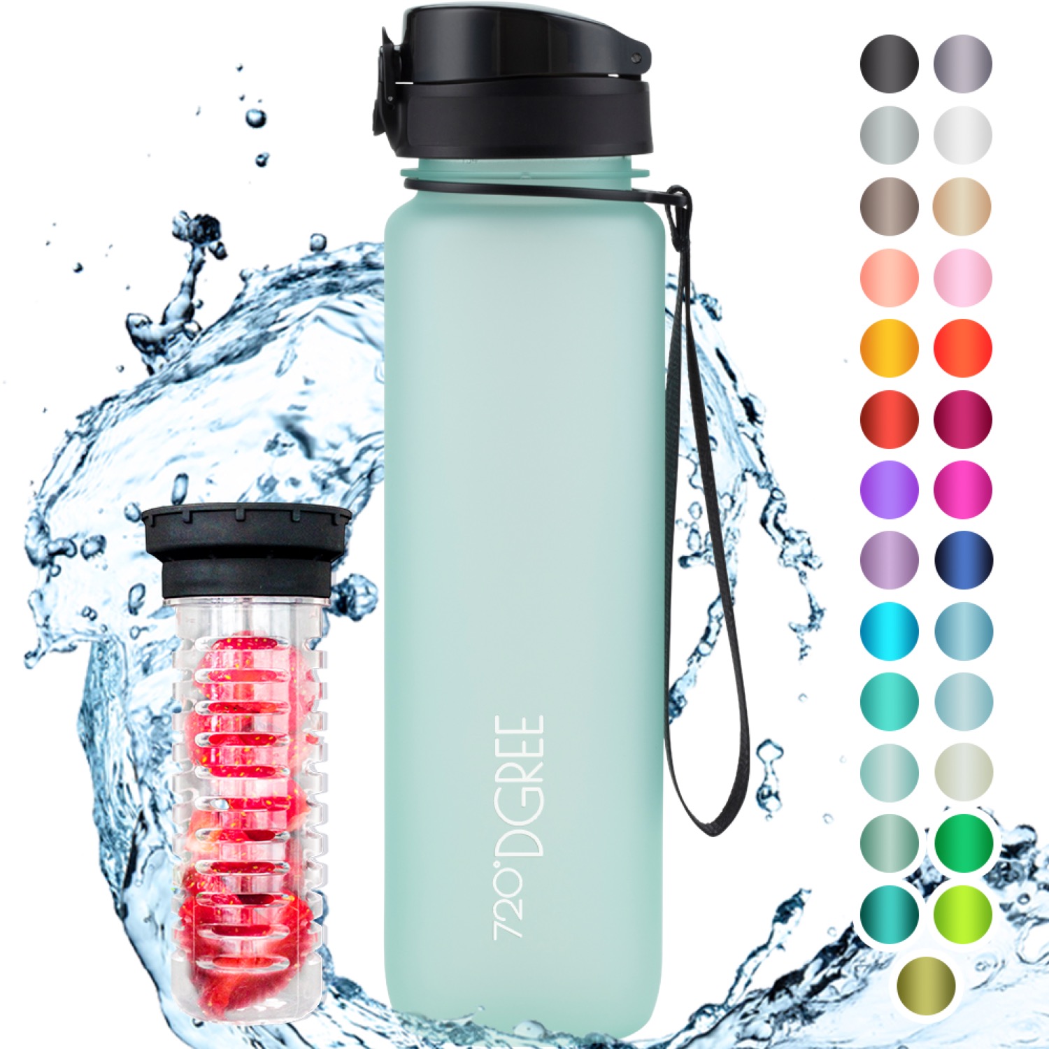 Die 720 DGREE Trinkflasche Wasserflasche Fruchteinsatz 1Liter - BPA-Frei überzeugt durch ihre zahlreichen Vorteile. Sie ist dicht, sodass kein unerwünschtes Auslaufen des Inhalts befürchtet werden muss. Zudem ist sie geschmacksneutral und schick im Design gestaltet. Die Flasche besteht aus robustem Material und verspricht dadurch eine lange Lebensdauer. Der integrierte Früchtebehälter bietet die Möglichkeit, dem Getränk einen frischen Geschmack zu verleihen und lässt sich kinderleicht befüllen. Auch das Öffnen zum Trinken gestaltet sich angenehm.