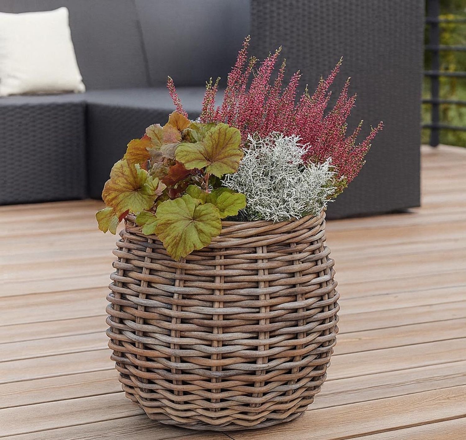 | Beschreibung | Der runde Pflanzkorb VERDANA von Kobolo ist aus hochwertigem Kubu-Rattan in einem natürlichen Grauton gefertigt. Mit einem Durchmesser von 46 cm und einer Folienauskleidung eignet sich dieser Pflanzkübel ideal zum Bepflanzen. Das natürliche Farbenspiel des Materials und die aufwendige Handarbeit verleihen jedem Übertopf einen einzigartigen Charme. Rattan ist ein beliebter Werkstoff, der durch seine hohe Belastbarkeit überzeugt. **Highlights** - Hergestellt aus hochwertigem Kubu-Rattan - Mit Folie ausgeschlagen für optimale Bepflanzung - Natürlicher Grauton für eine ansprechende Optik - Handgefertigt, daher einzigartig in Form und Farbe - Hohe Belastbarkeit und Langlebigkeit **Produkteigenschaften** - Durchmesser: 46 cm - Material: Kubu-Rattan - Farbe: Grau - Handarbeit, daher können Abweichungen in Form, Farbe und Größe auftreten |