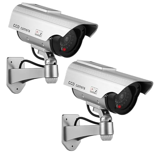 TronicXL 2 Stück Kameraattrappe mit Solar Panel I Kamera Attrappe Dummy unecht Fake Outdoor Überwachungskamera mit Objektiv und Blink LED für Innen- und Außenbereich