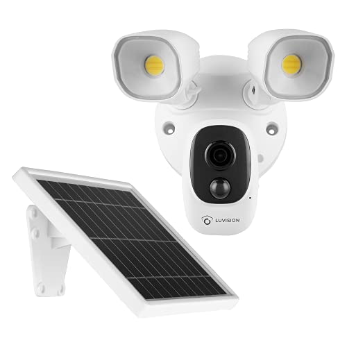 LUVISION Kabellose WLAN Überwachungskamera mit Solarpanel – Solar IP Überwachungssystem mit LED Flutlicht Lampe & Bewegungsmelder2-Wege Audio, per App steuerbar, mit Nachtsicht