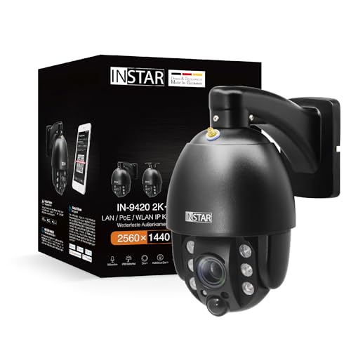 Die INSTAR IN-9420 2K+ besticht durch ihr robustes Gehäuse aus Aluminium, das sowohl Haltbarkeit als auch eine ansprechende Ästhetik bietet. Die Kamera ist in einem matten Schwarz gehalten, was sie in verschiedenen Umgebungen unauffällig macht. Mit ihren PTZ-Funktionen (Schwenk- und Neigefunktionen) ermöglicht sie eine flexible Montage, die sowohl im Innen- als auch im Außenbereich effektiv eingesetzt werden kann. Kundenbewertungen heben hervor, dass die Kamera auch extremen Wetterbedingungen standhält und somit ideal für die Überwachung von Gärten oder gewerblichen Räumlichkeiten geeignet ist.
