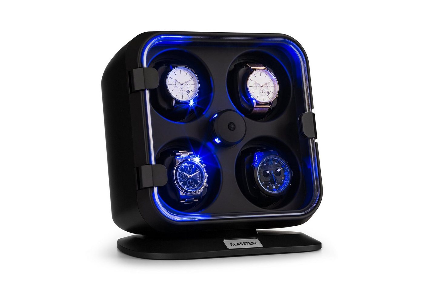 Das Gerät ermöglicht die gleichzeitige Aufbewahrung und Pflege von bis zu vier Automatikuhren, sodass diese stets betriebsbereit bleiben. Mit verschiedenen Rotationsmodi und Drehgeschwindigkeiten sorgt es dafür, dass die Mechanik der Uhren optimal geschont wird. Das edle Design mit transparenter Fronttür und blauer LED-Beleuchtung hebt den ästhetischen Wert in jedem Raum hervor.
