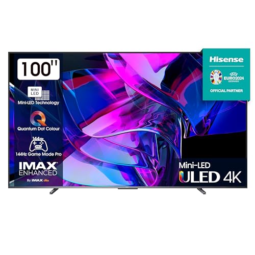 Der Hisense 100U7KQ Fernseher bietet ein hervorragendes Preis-Leistungsverhältnis und beeindruckt mit seiner großen Bildschirmgröße von 100 Zoll. Mit der innovativen Mini LED ULED HDR Technologie liefert dieser Smart TV eine atemberaubende Bildqualität, die jedes Detail in lebendigen Farben und gestochen scharfer Klarheit darstellt. Genießen Sie ein immersives Seherlebnis im eigenen Wohnzimmer.