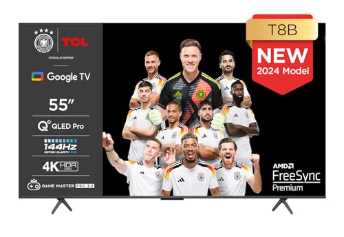 Der TCL 55T8B 55-Zoll QLED Pro Gaming Fernseher bietet eine eindrucksvolle Kombination aus hochmoderner Bildtechnologie, immersivem Sound und benutzerfreundlichen Smart-Funktionen. Mit einem nativen 144Hz-Display und 4K UHD Auflösung zielt dieser Fernseher auf Gamer und Filmfans ab, die Wert auf Qualität und Leistung legen.